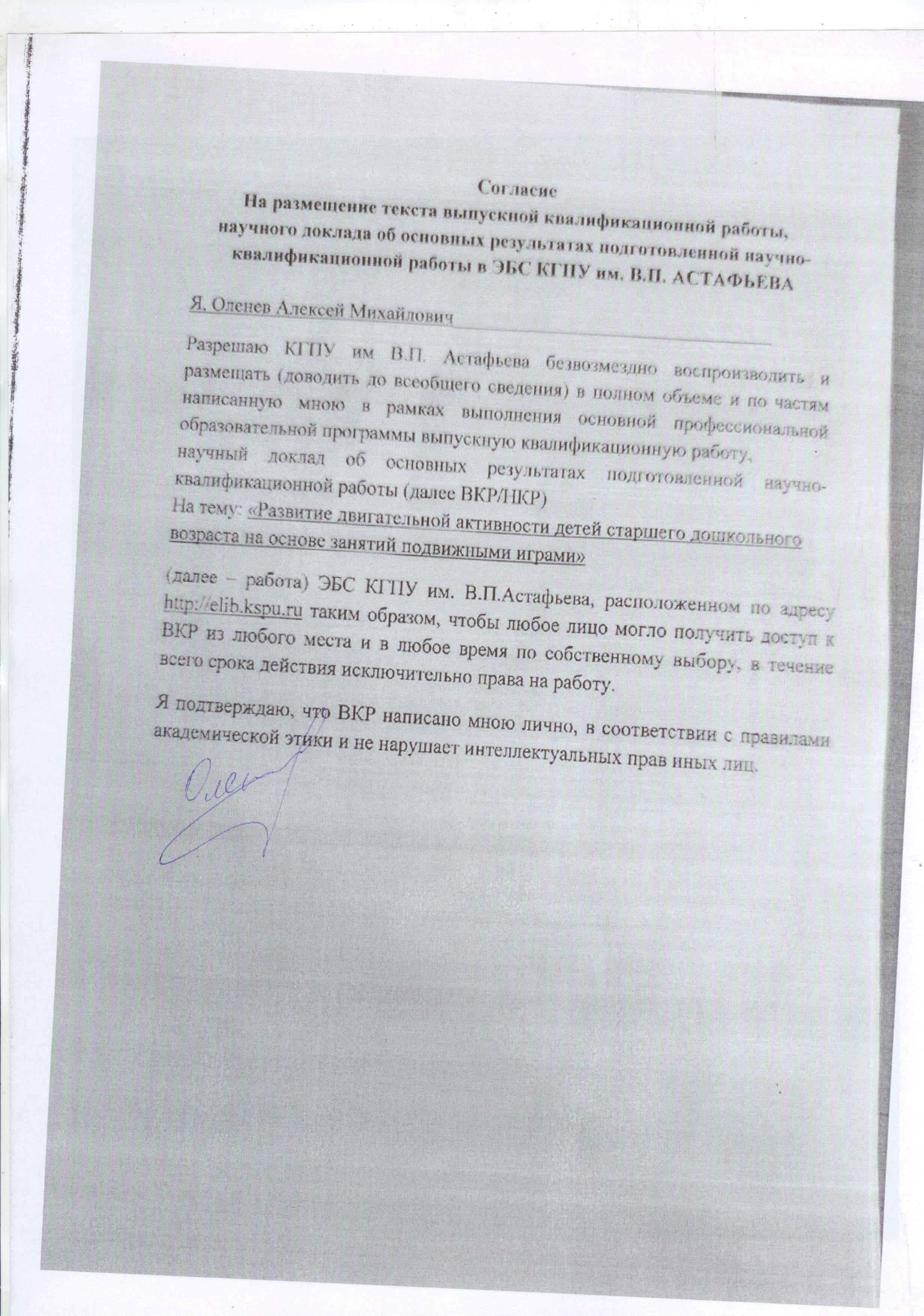 Развитие двигательной активности детей старшего дошкольного возраста на основе занятий подвижными играми