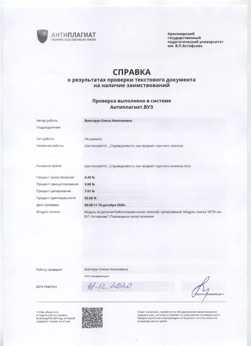 Справедливость как предмет научного анализа