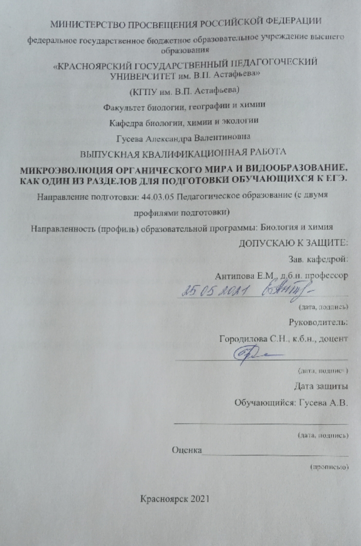 Микроэволюция органического мира и видообразование как один из разделов для подготовки обучающихся к ЕГЭ