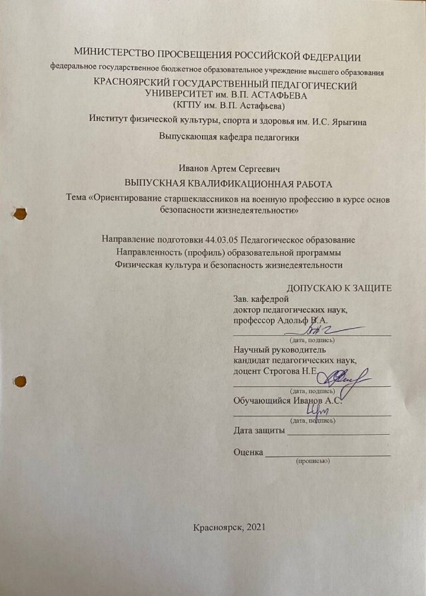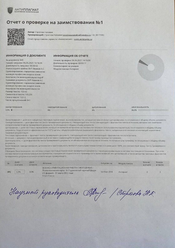 Ориентирование старшеклассников на военную профессию в курсе основ безопасности жизнедеятельности