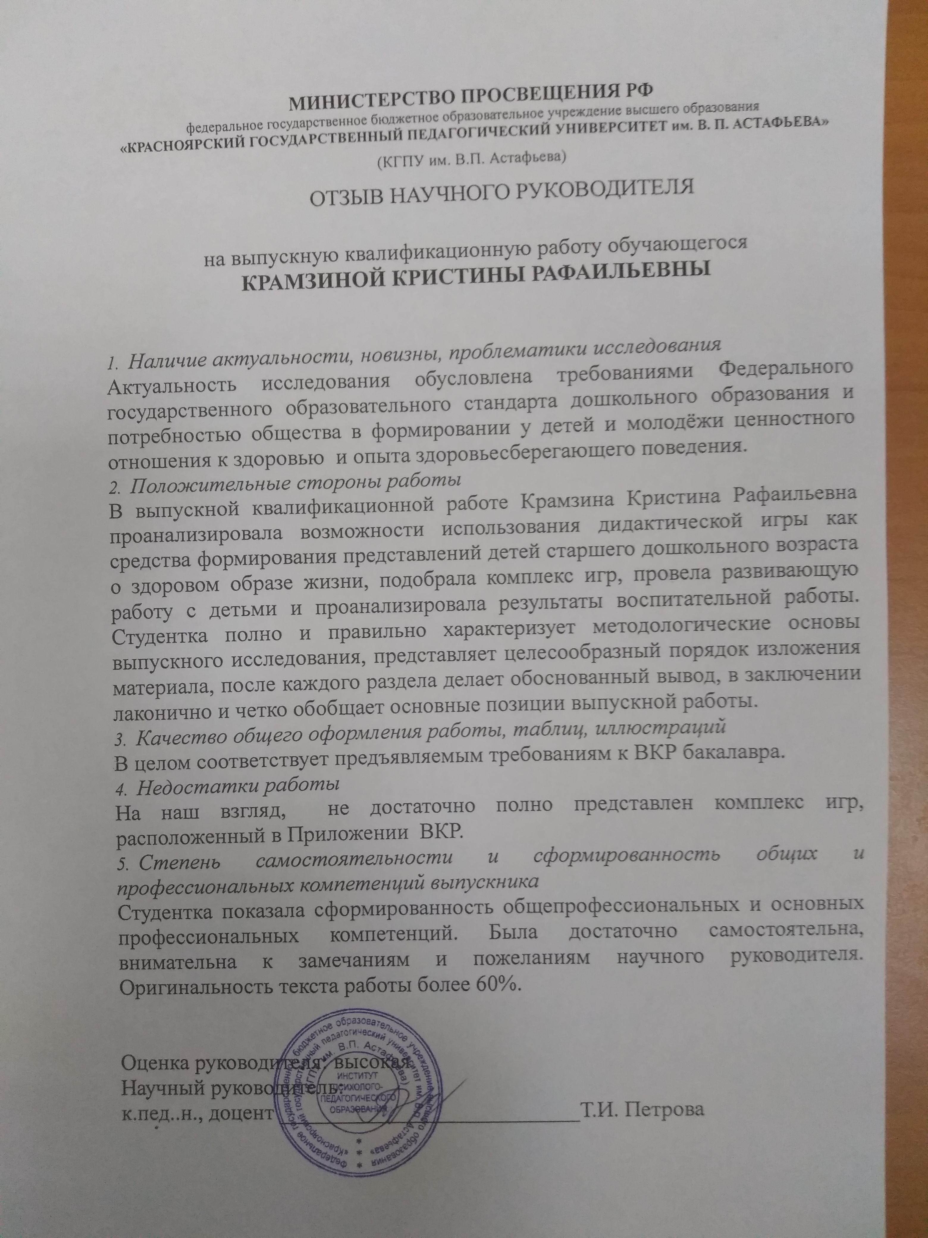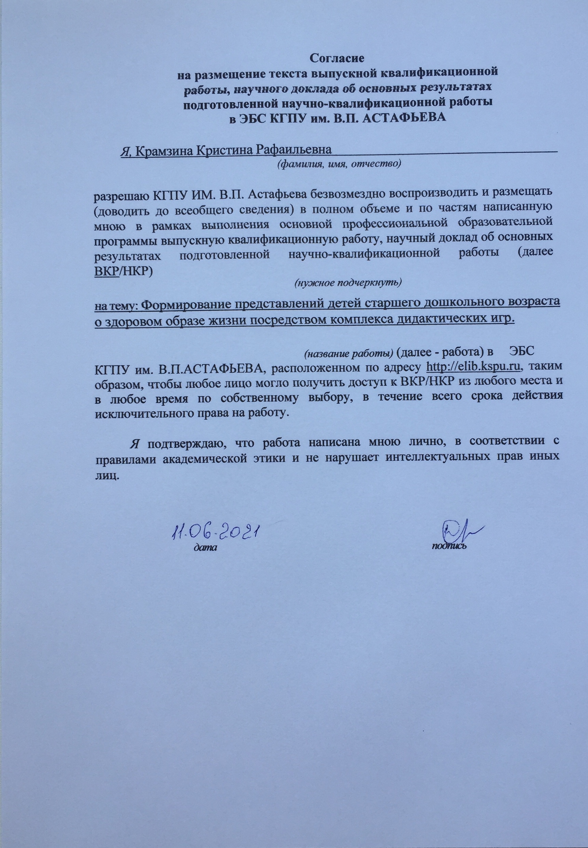 Крамзина К.Р. ФОРМИРОВАНИЕ ПРЕДСТАВЛЕНИЙ ДЕТЕЙ СТАРШЕГО ДОШКОЛЬНОГО ВОЗРАСТА О ЗДОРОВОМ ОБРАЗЕ ЖИЗНИ ПОСРЕДСТВОМ КОМПЛЕКСА ДИДАКТИЧЕСКИХ ИГР