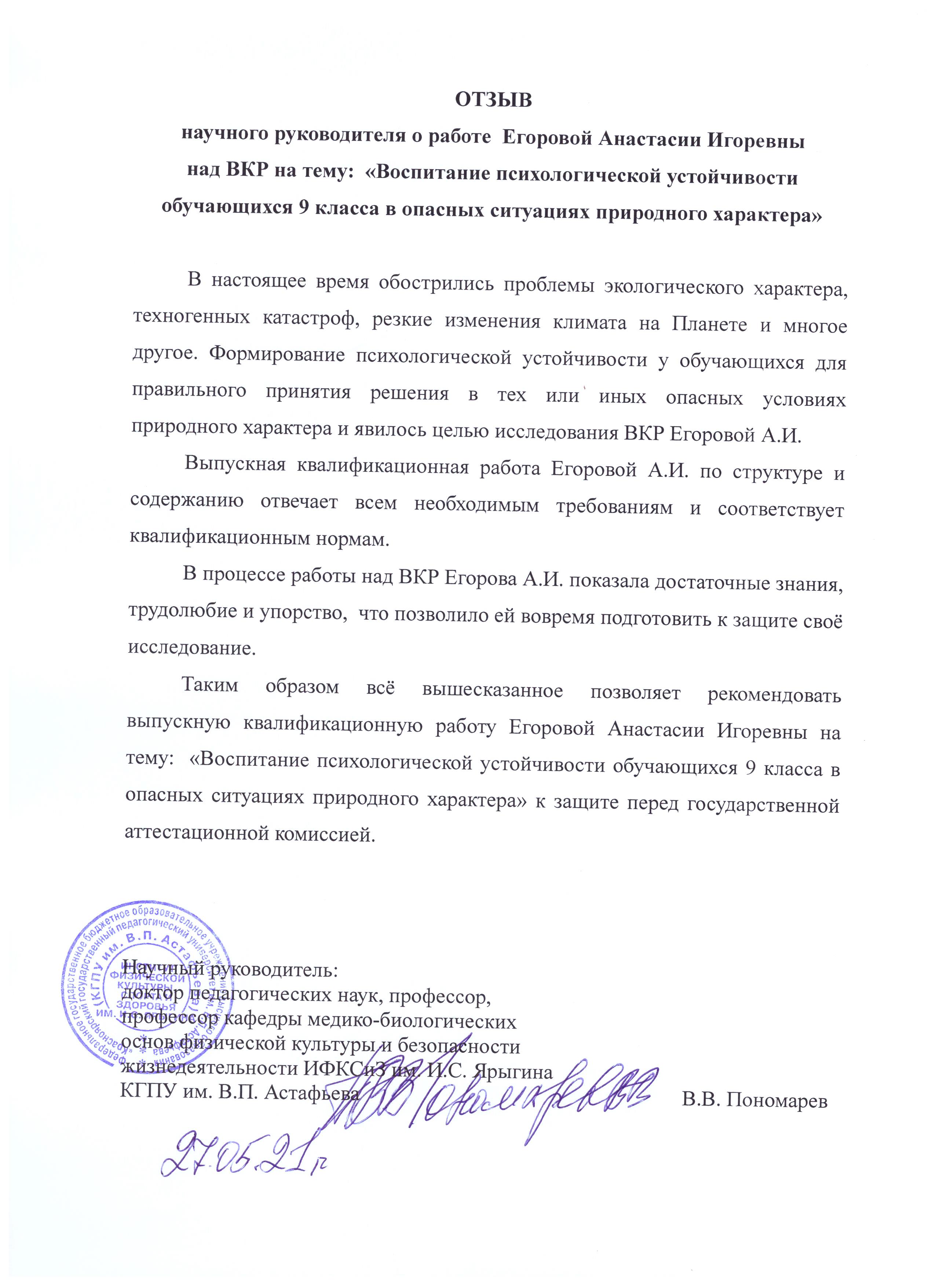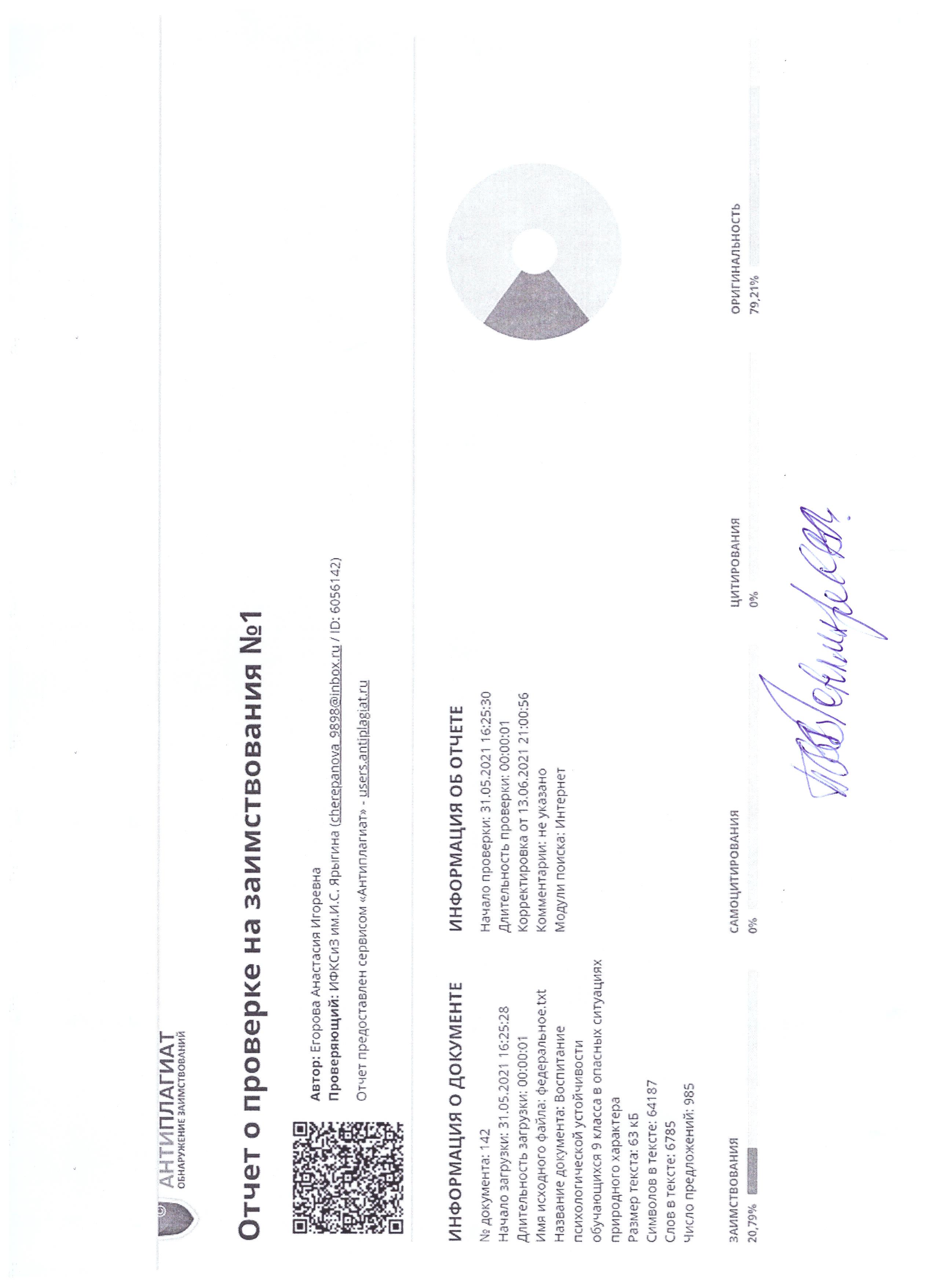 Воспитание психологической устойчивости обучающихся 9 класса в опасных ситуациях природного характера