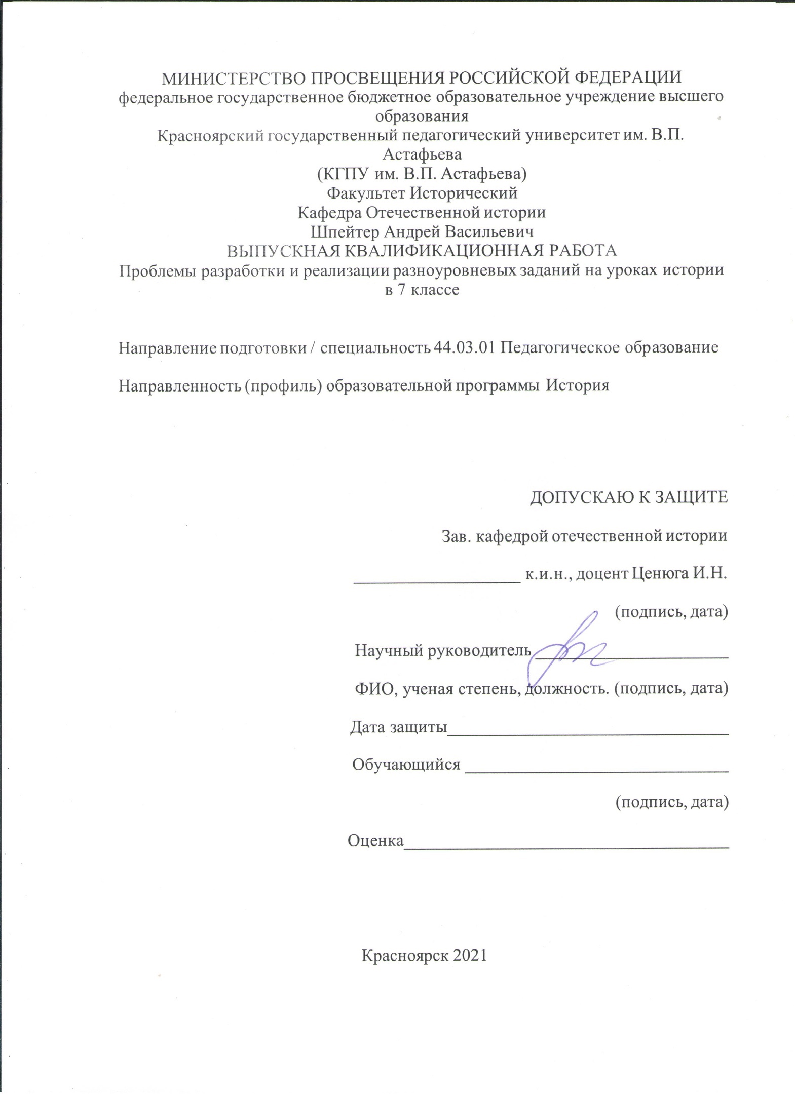 - Кафедра отечественной истории