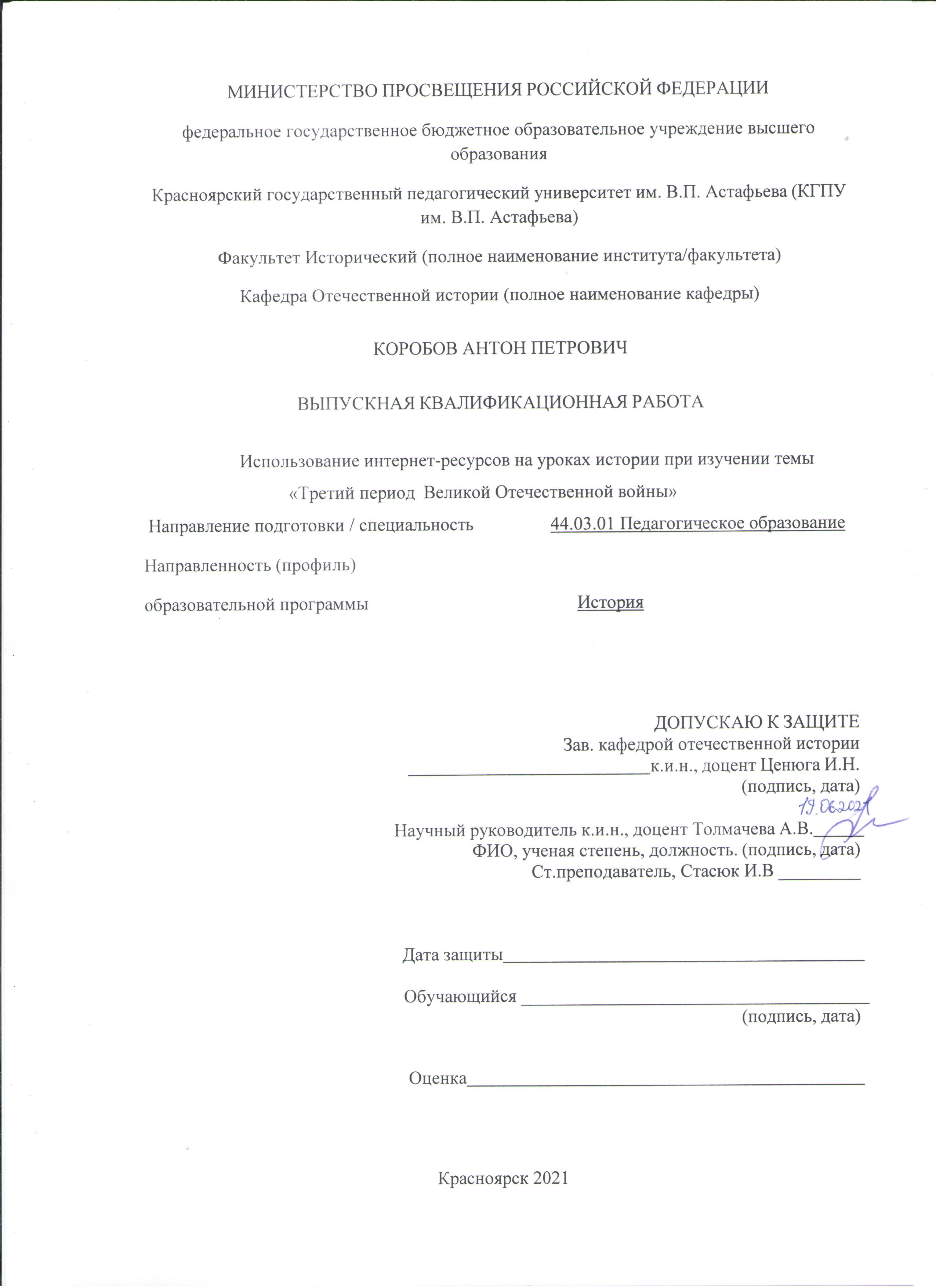 Использование интернет-ресурсов на уроках истории при изучении третьего периода Великой Отечественной войны