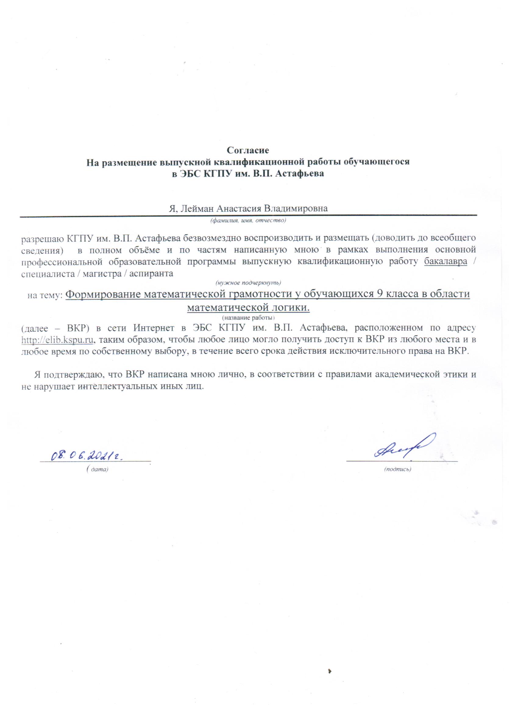Формирование математической грамотности у обучающихся 9 класса в области математической логики