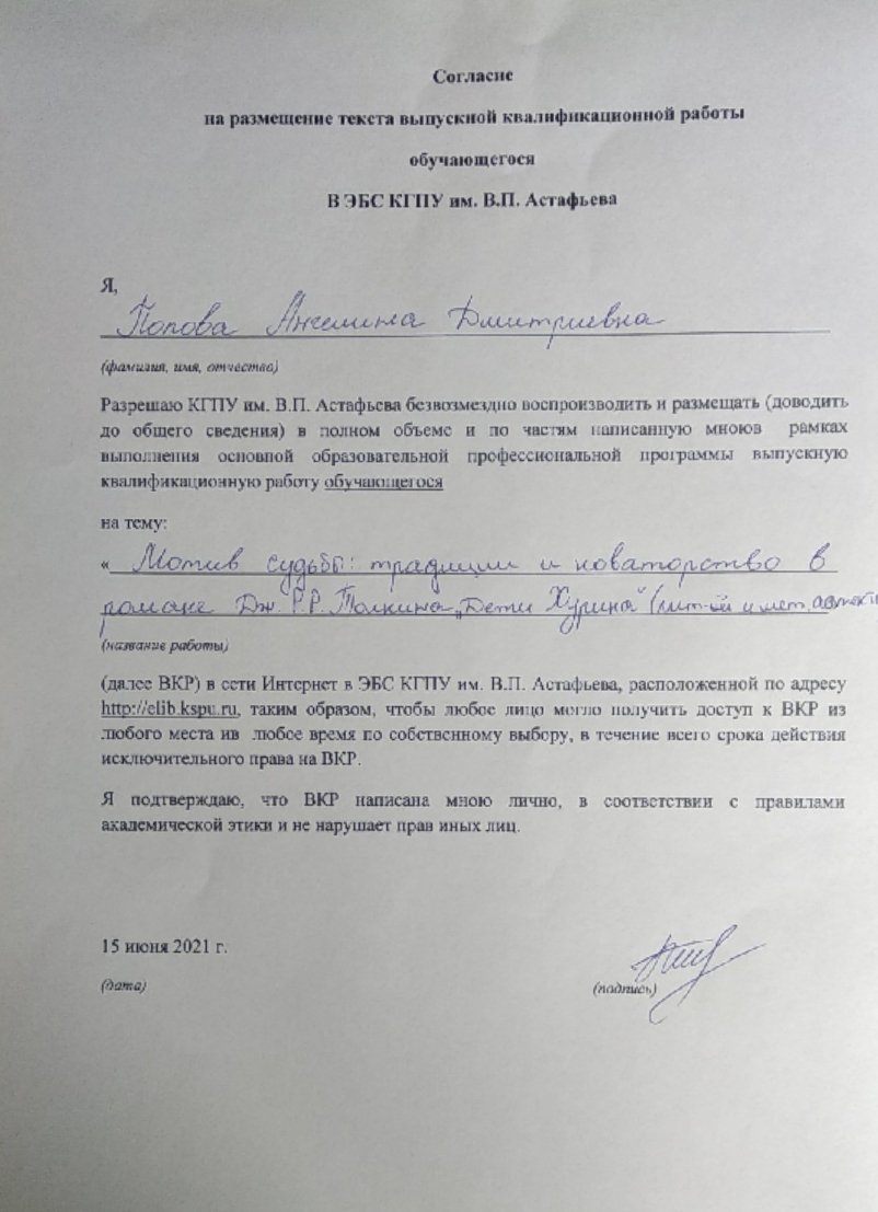 Мотив судьбы:традиции и новаторствов романе Дж.Р.Р. Толкина «Дети Хурина» (литературоведческий и методический аспекты)