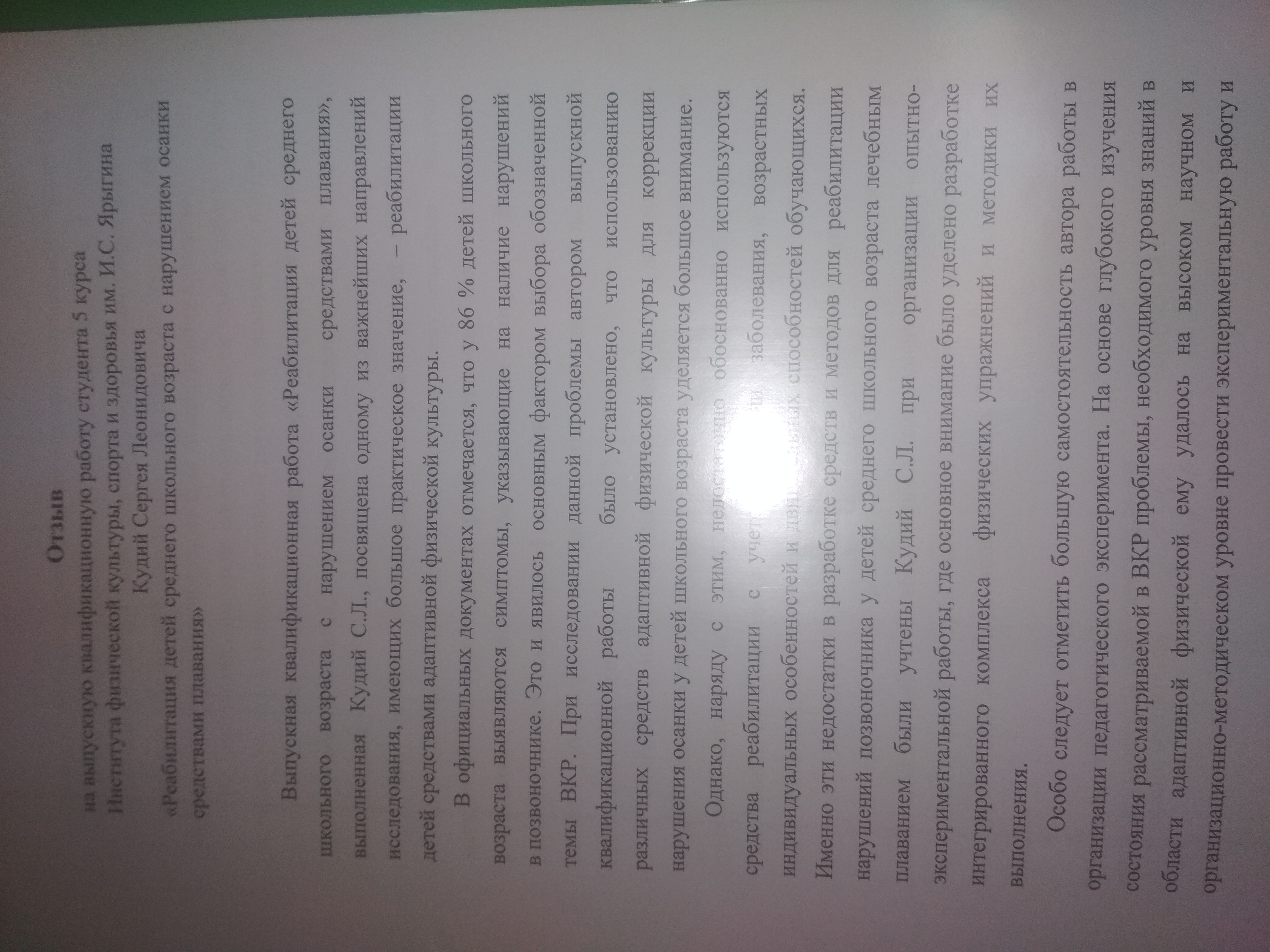Реабилитация детей среднего школьного возраста с нарушением осанки средствами плавания