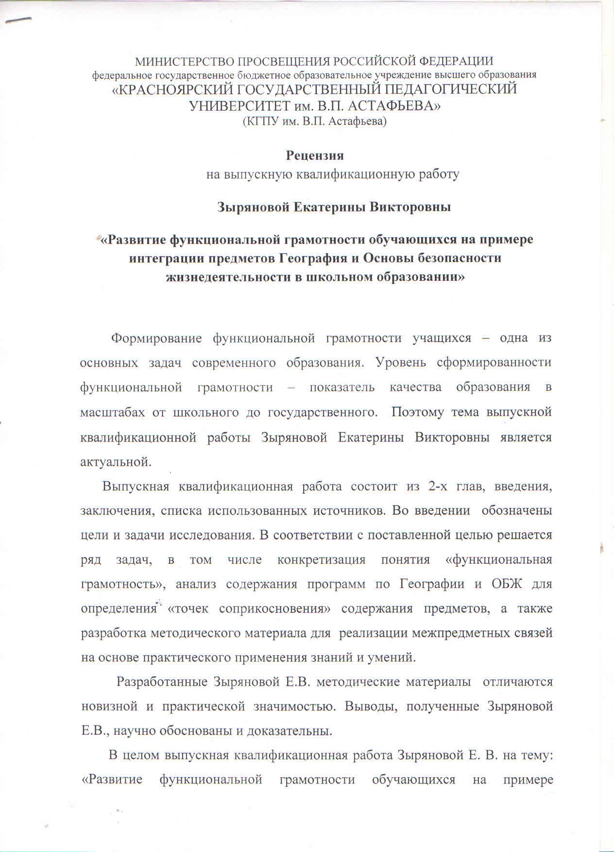 Развитие функциональной грамотности обучающихся на примере интеграции предметов География и Основы безопасности жизнедеятельности в школьном образовании