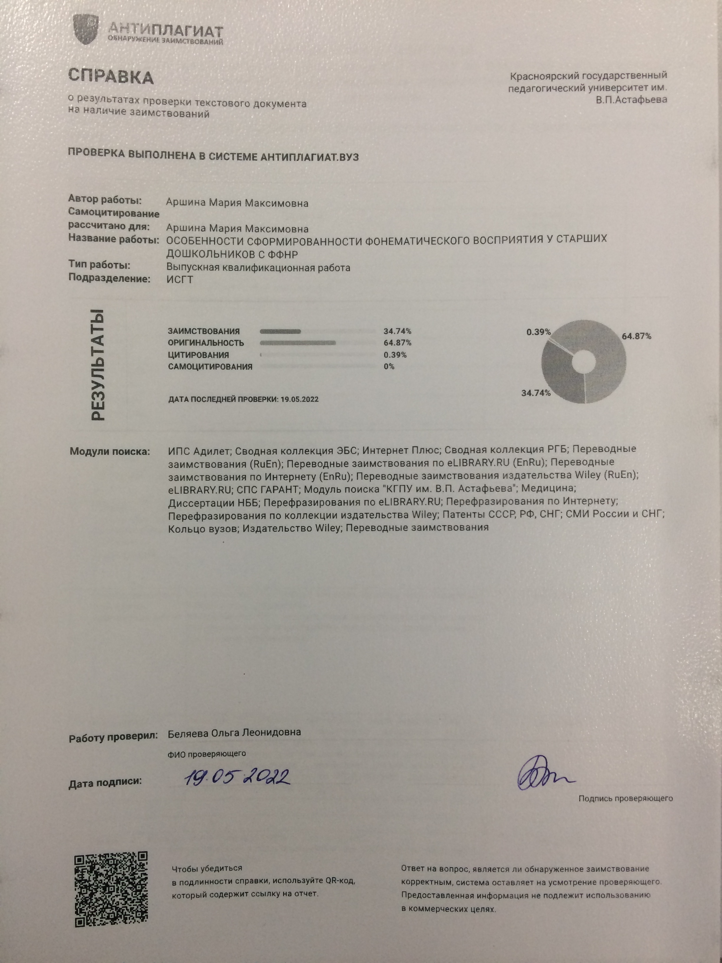 Особенности сформированности фонематического восприятия у старших дошкольников с фонетико-фонематическим недоразвитием речи