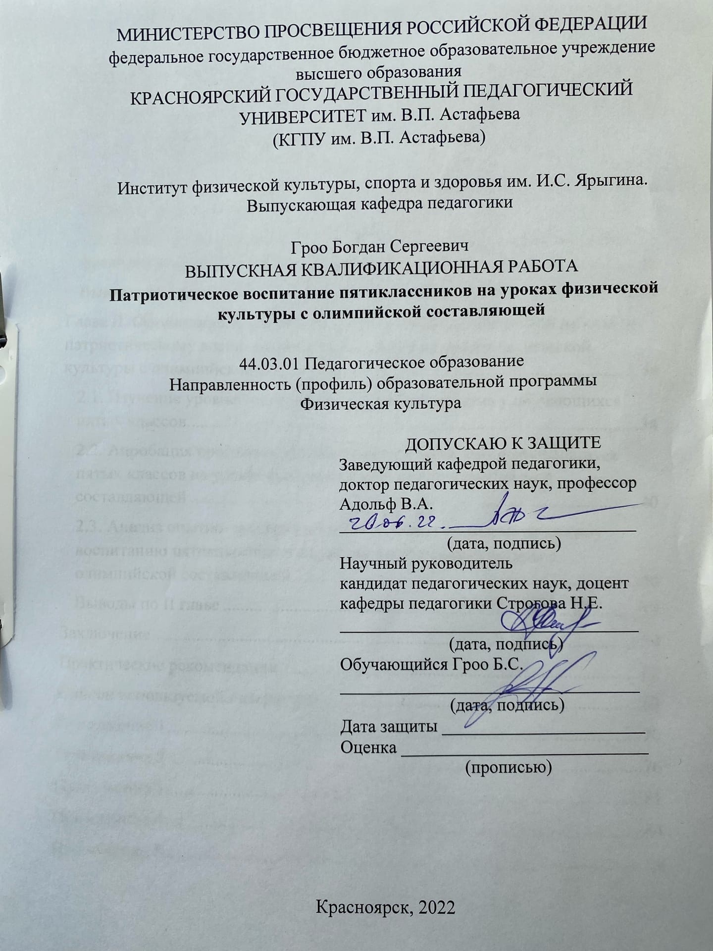 Патриотическое воспитание пятиклассников на уроках физической культуры с олимпийской составляющей