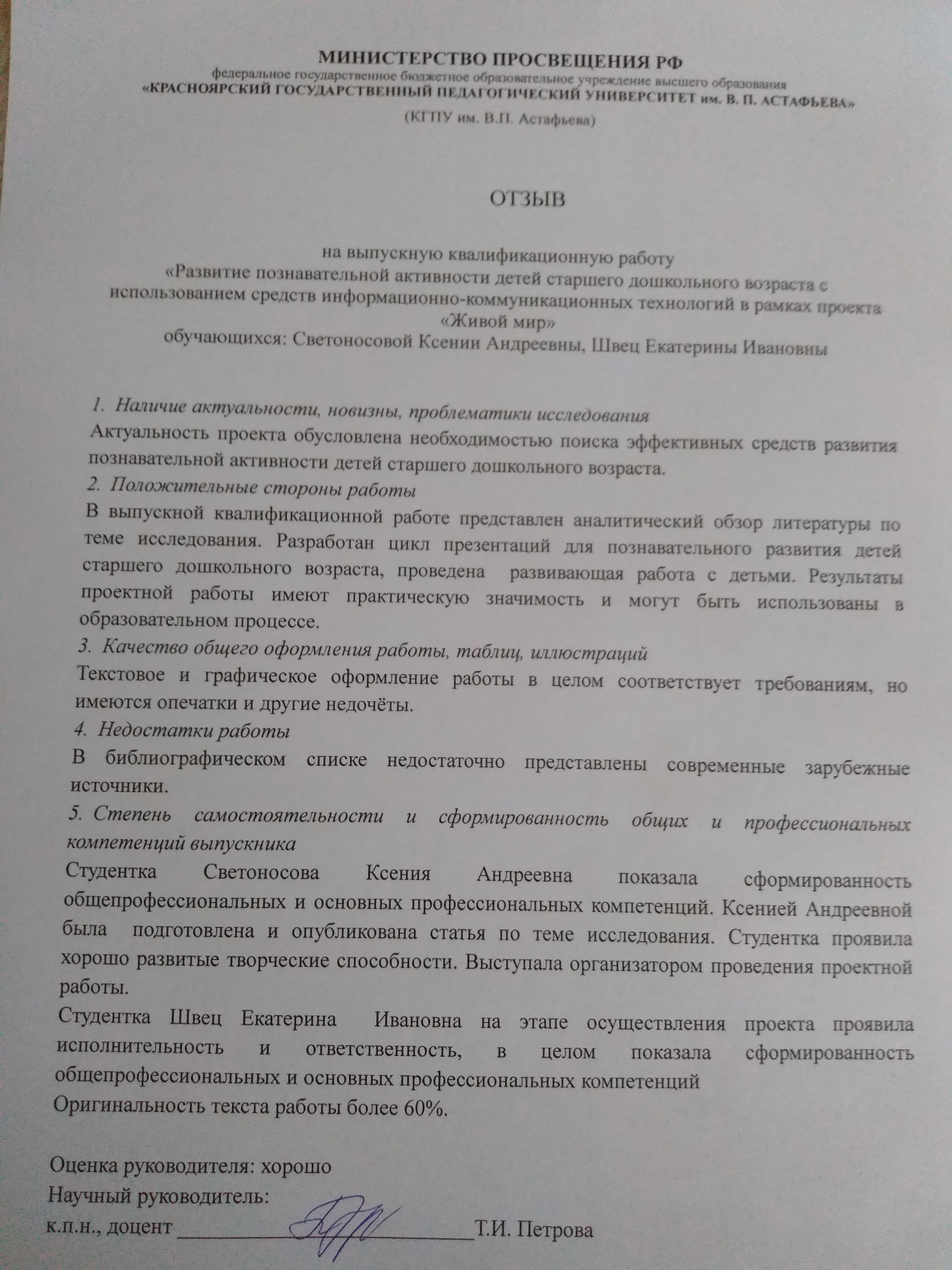 Светоносова К.А., Швец Е.И. Развитие познавательной активности детей старшего дошкольного возраста с использованием средств информационно-коммуникационных технологий в рамках проекта "Живой мир"