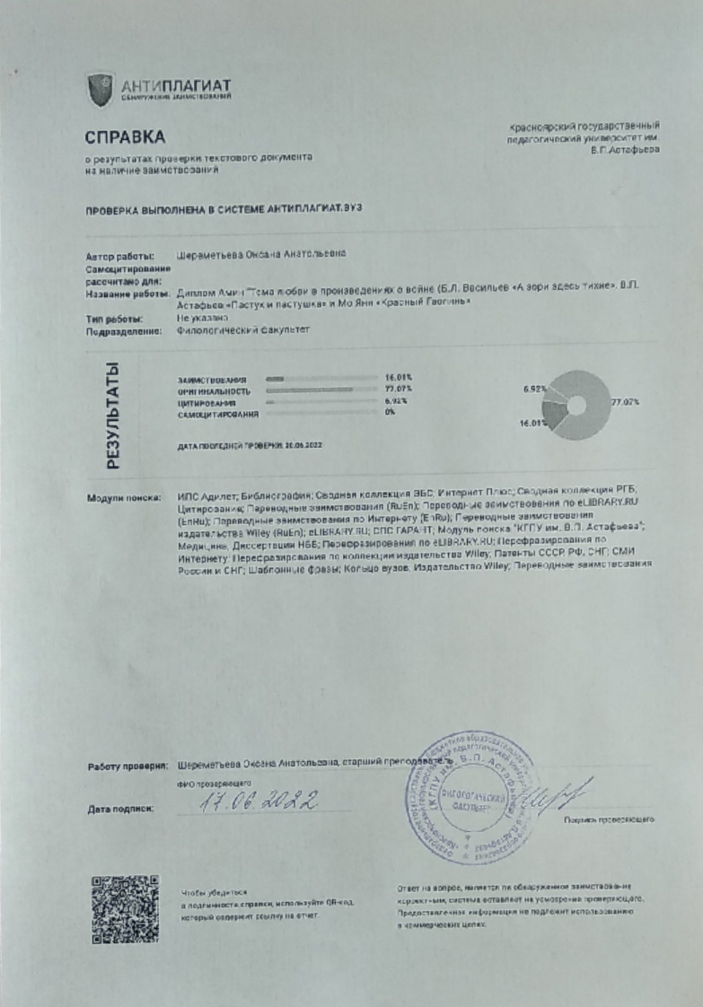 Тема любви в произведениях о войне (Б.Л. Васильев «А зори здесь тихие», В.П. Астафьев «Пастух и пастушка» и Мо Яня «Красный Гаолянь»)