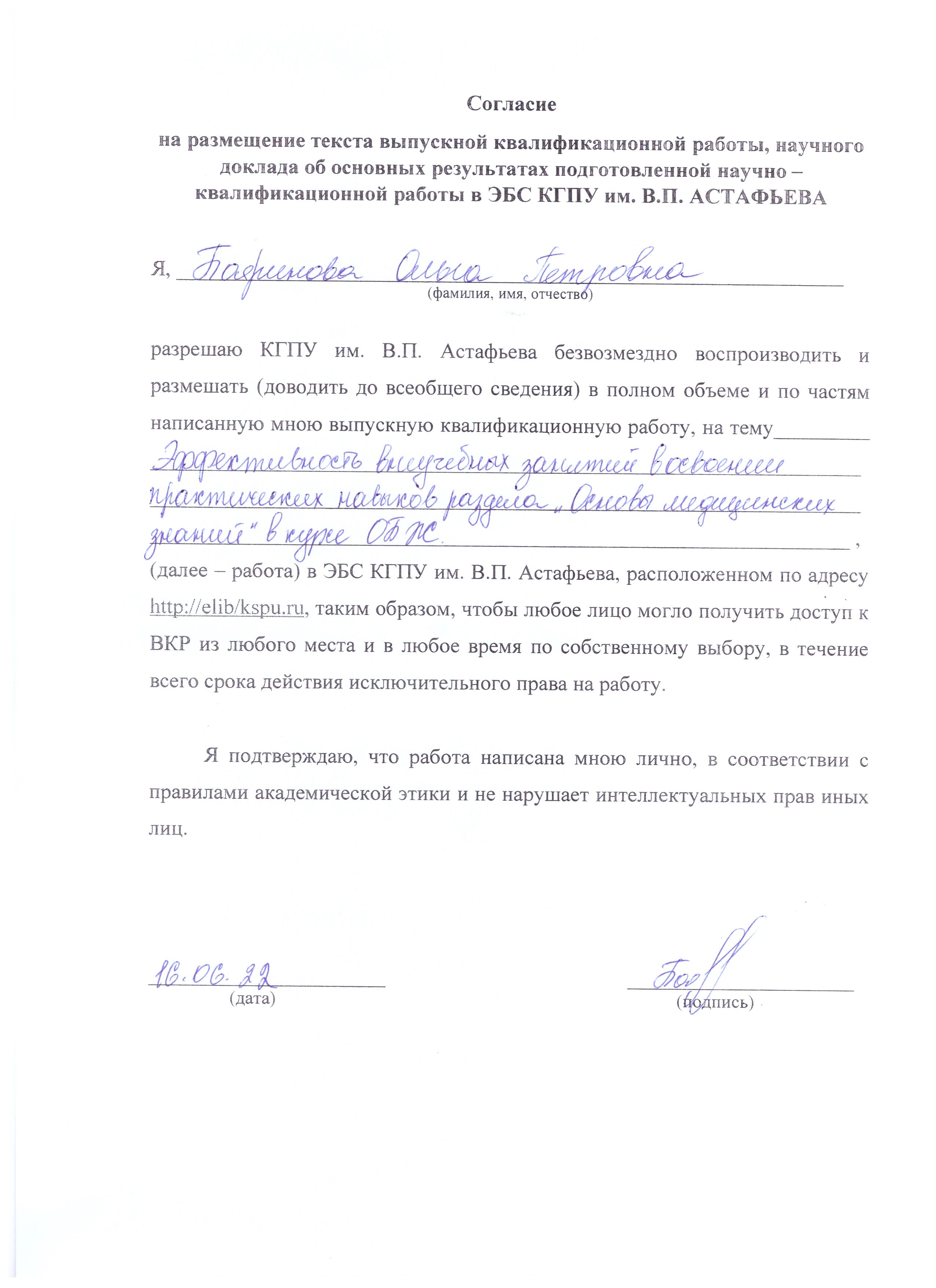Эффективность внеучебных занятий в освоении практических навыков раздела «Основы медицинских знаний» в курсе ОБЖ