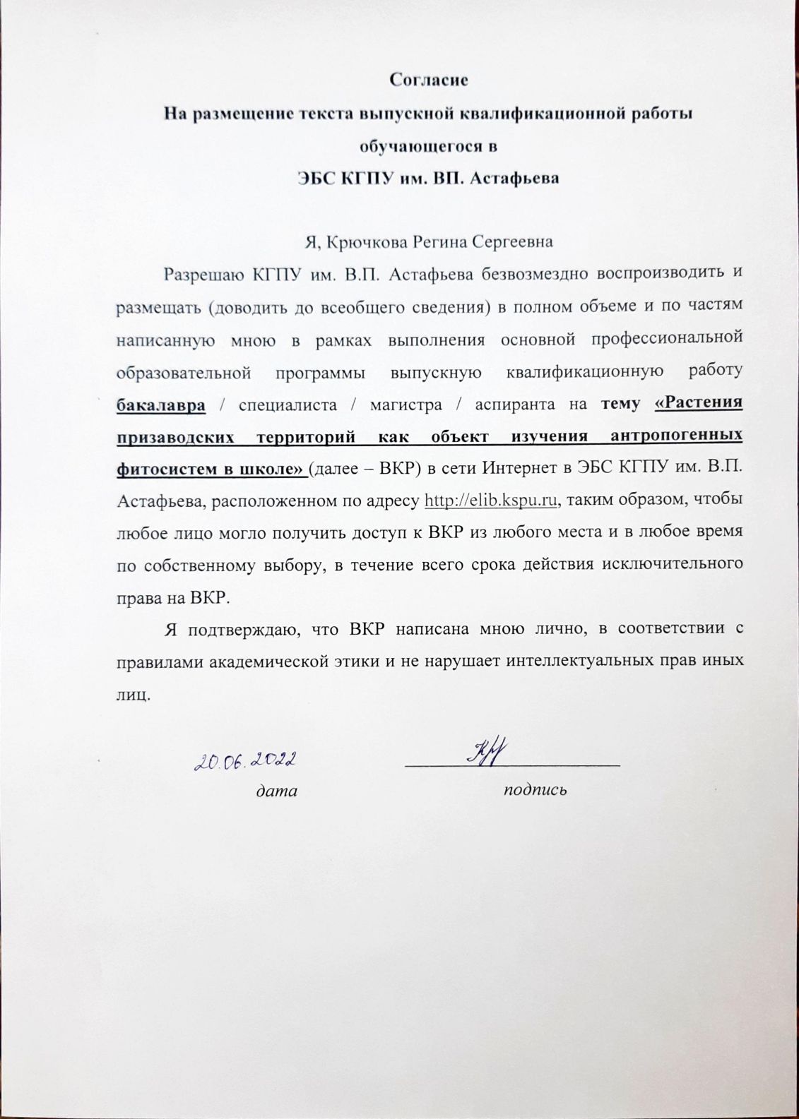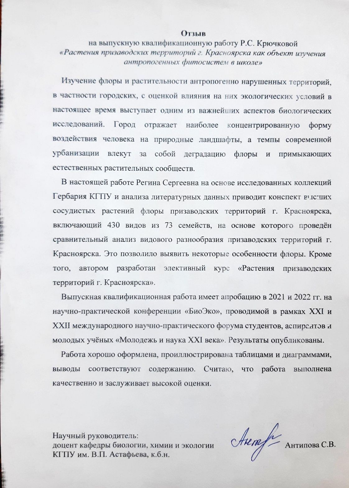 РАСТЕНИЯ ПРИЗАВОДСКИХ ТЕРРИТОРИЙ Г. КРАСНОЯРСКА КАК ОБЪЕКТ ИЗУЧЕНИЯ АНТРОПОГЕННЫХ ФИТОСИСТЕМ В ШКОЛЕ