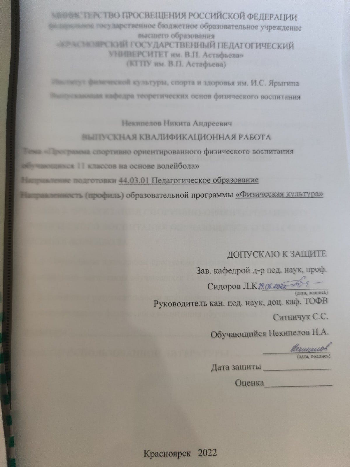 - 44.03.01 Педагогическое образование - Физическая культура (о)