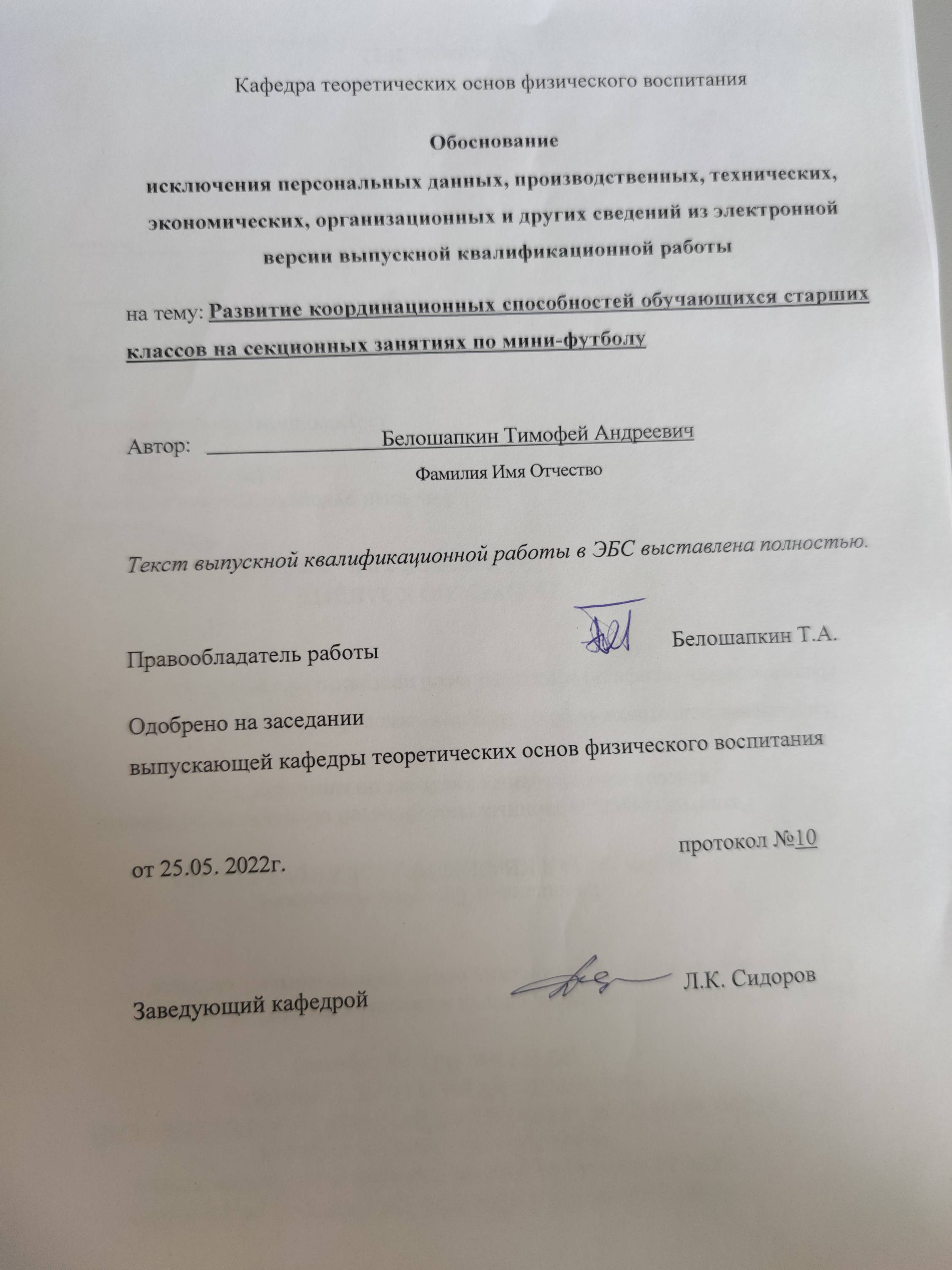 Развитие координационных способностей обучающихся старших классов на секционных занятиях по мини-футболу