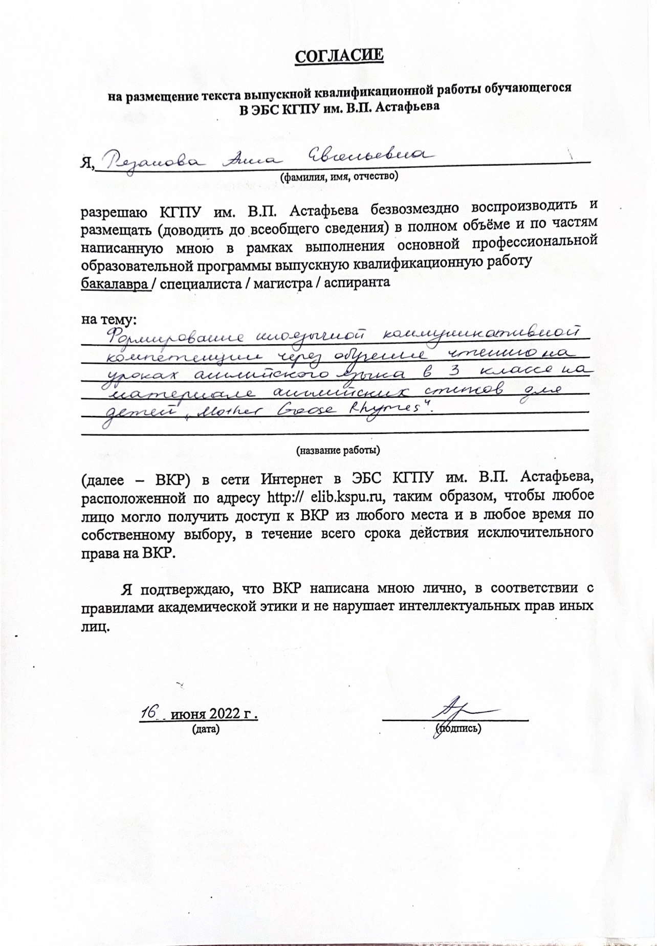 Формирование иноязычной коммуникативной компетенции через обучение чтению на уроках английского языка в 3 классе на материале английских стихов для детей «Mother Goose Rhymes»