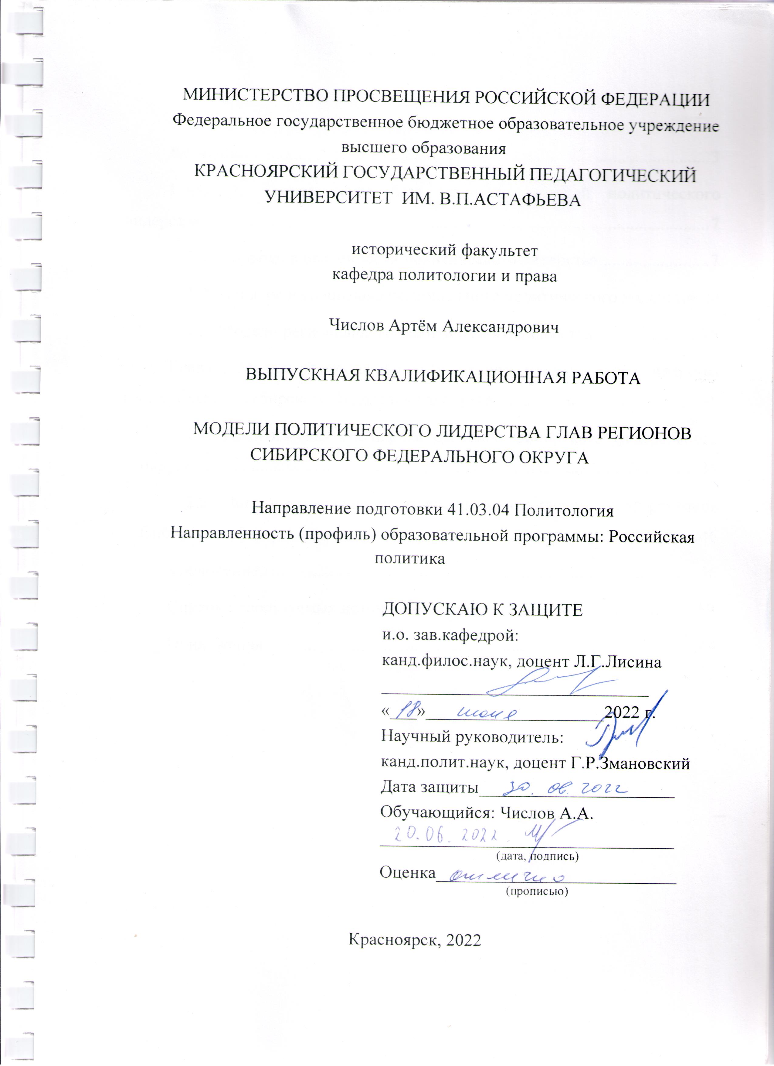 Модели политического лидерства глав регионов Сибирского федерального округа