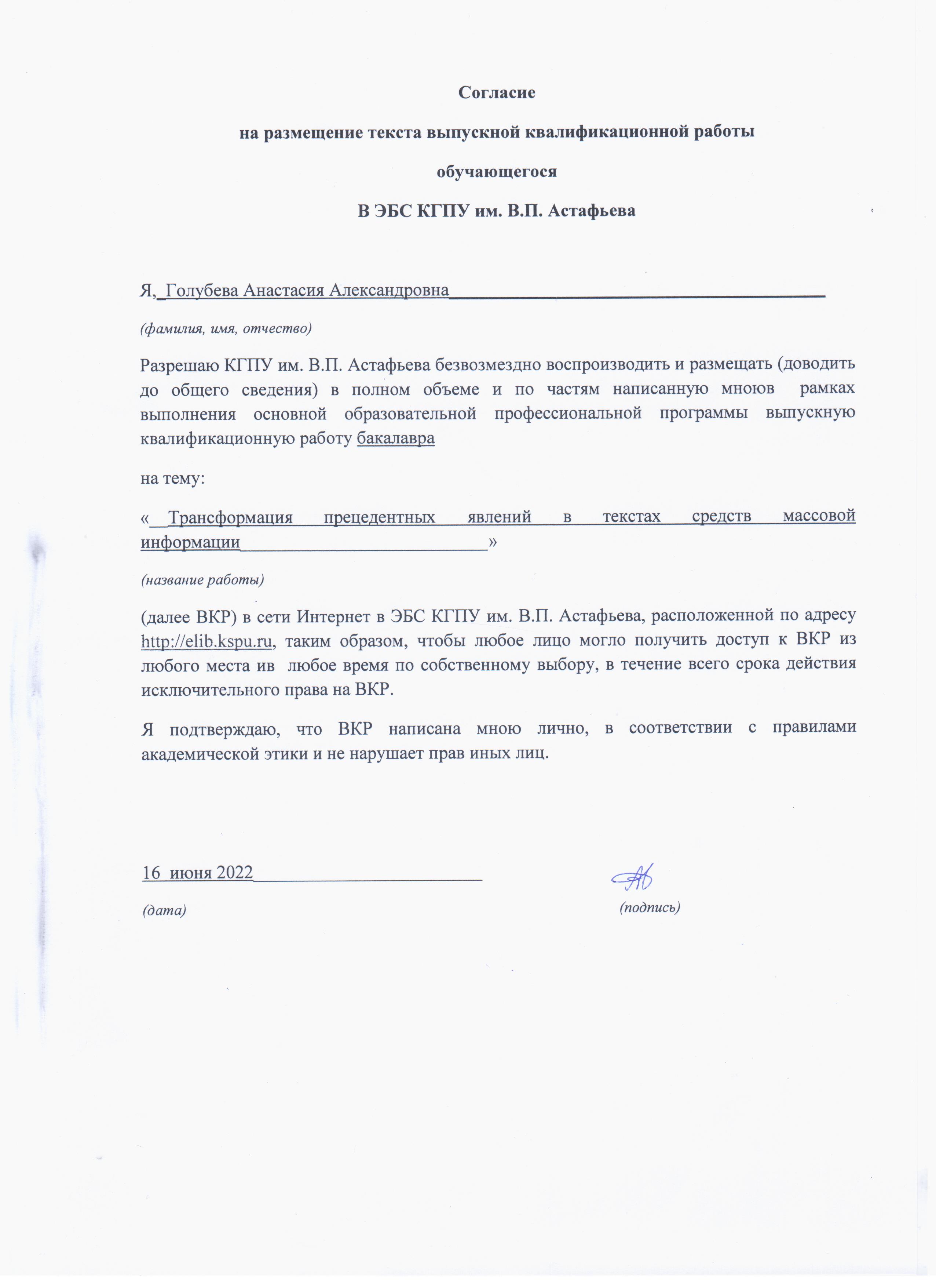 Трансформация прецедентных явлений в текстах средств массовой информации