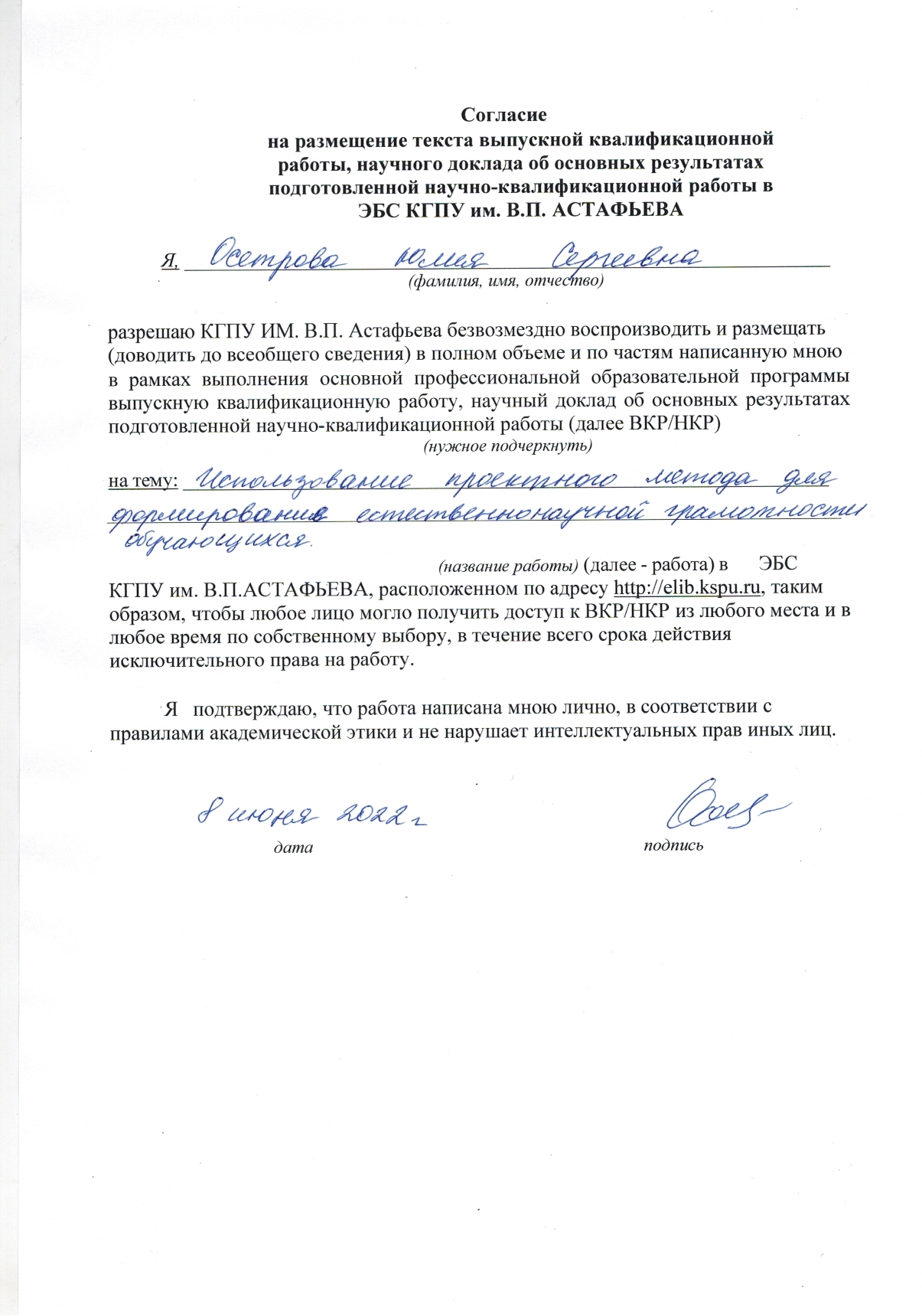 Использование проектного метода для формирования естественнонаучной грамотности обучающихся