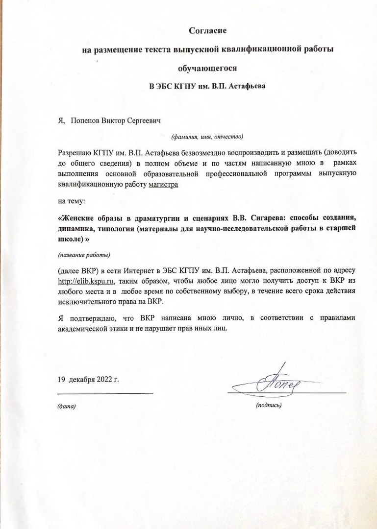 Женские образы в драматургии и сценариях В.В. Сигарева: способы создания, динамика, типология (материалы для научно-исследовательской работы в старшей школе)