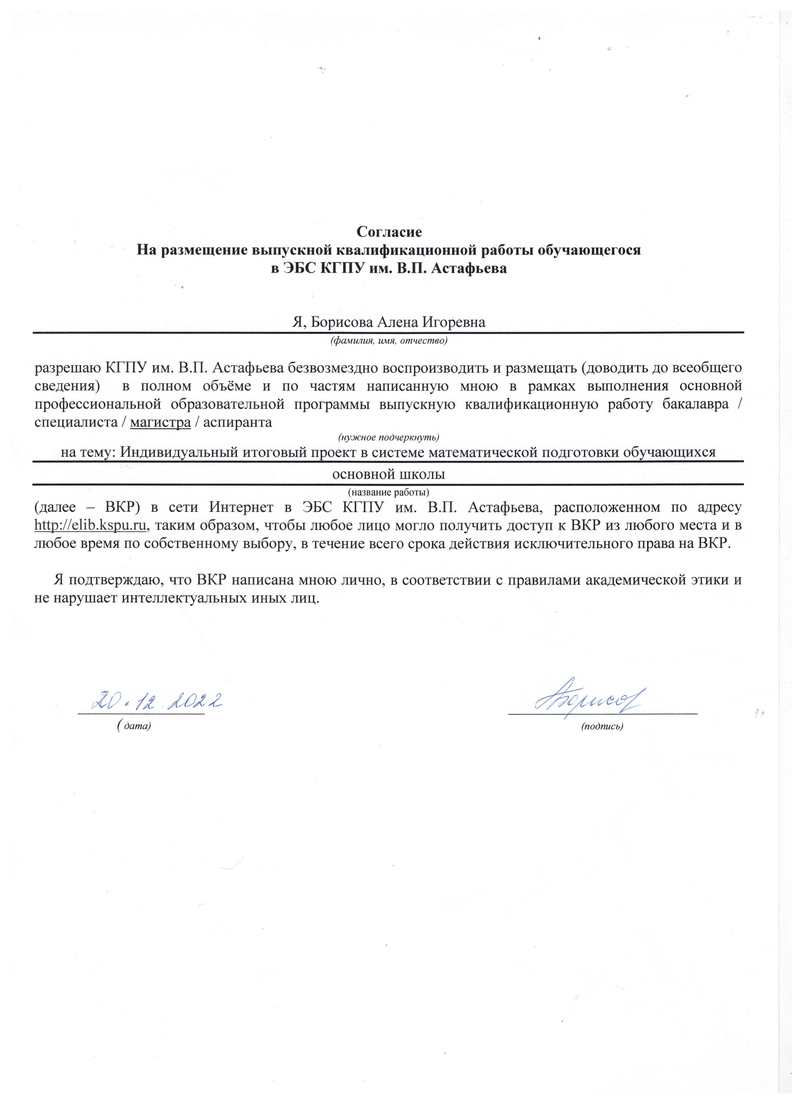 Индивидуальный итоговый проект в системе математической подготовки обучающихся основной школы