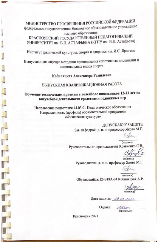 Обучение техническим приемам в волейболе школьников 12-13 лет во внеучебной деятельности средствами подвижных игр