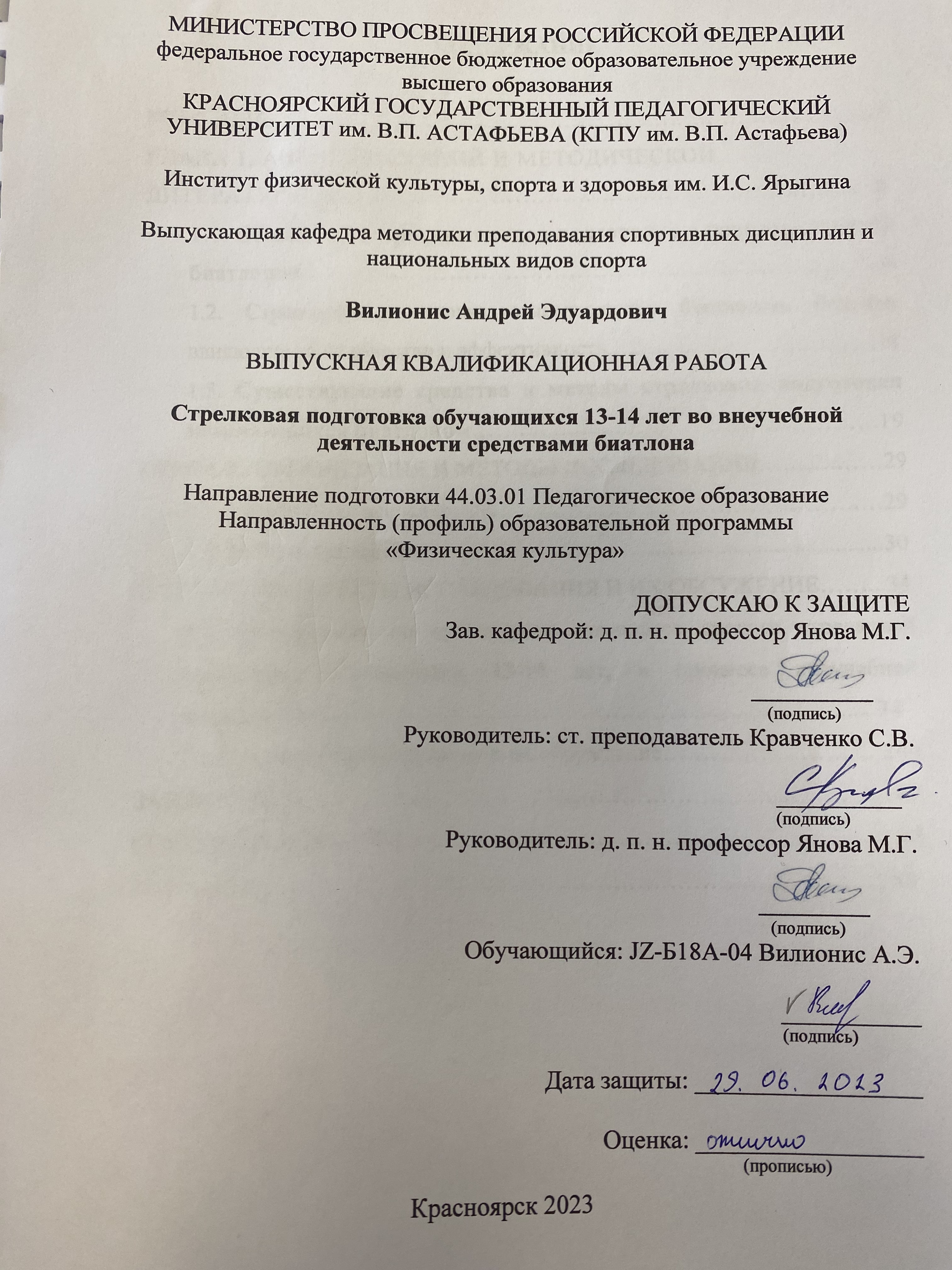 Стрелковая подготовка обучающихся 13-14 лет во внеучебной деятельности средствами биатлона