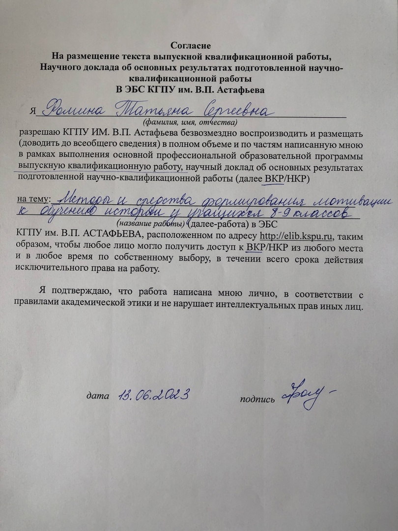 Методы и средства формирования мотивации к обучению истории у учащихся 8-9 классов
