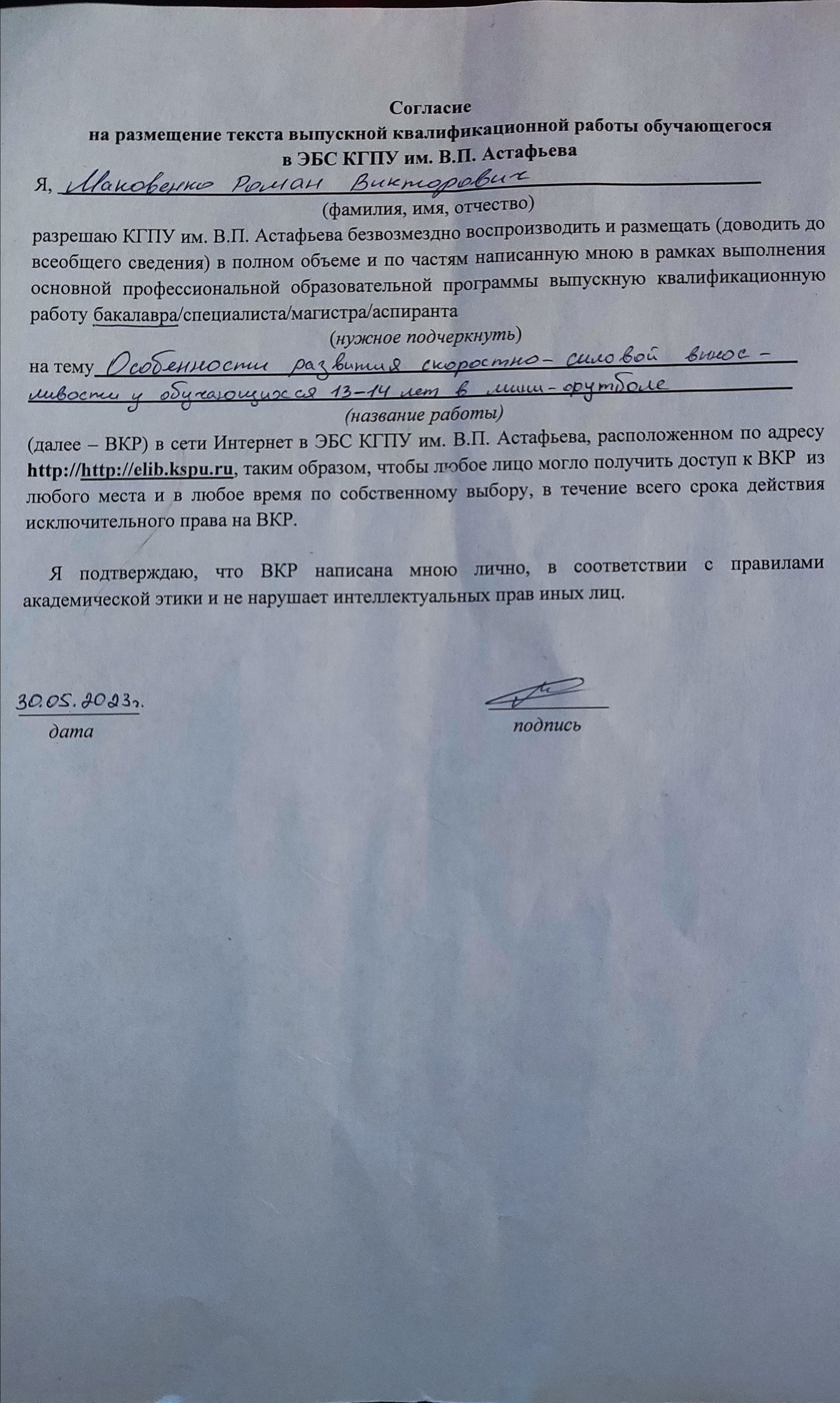 Особенности развития скоростно-силовой выносливости у обучающихся 13-14 лет в мини-футболе