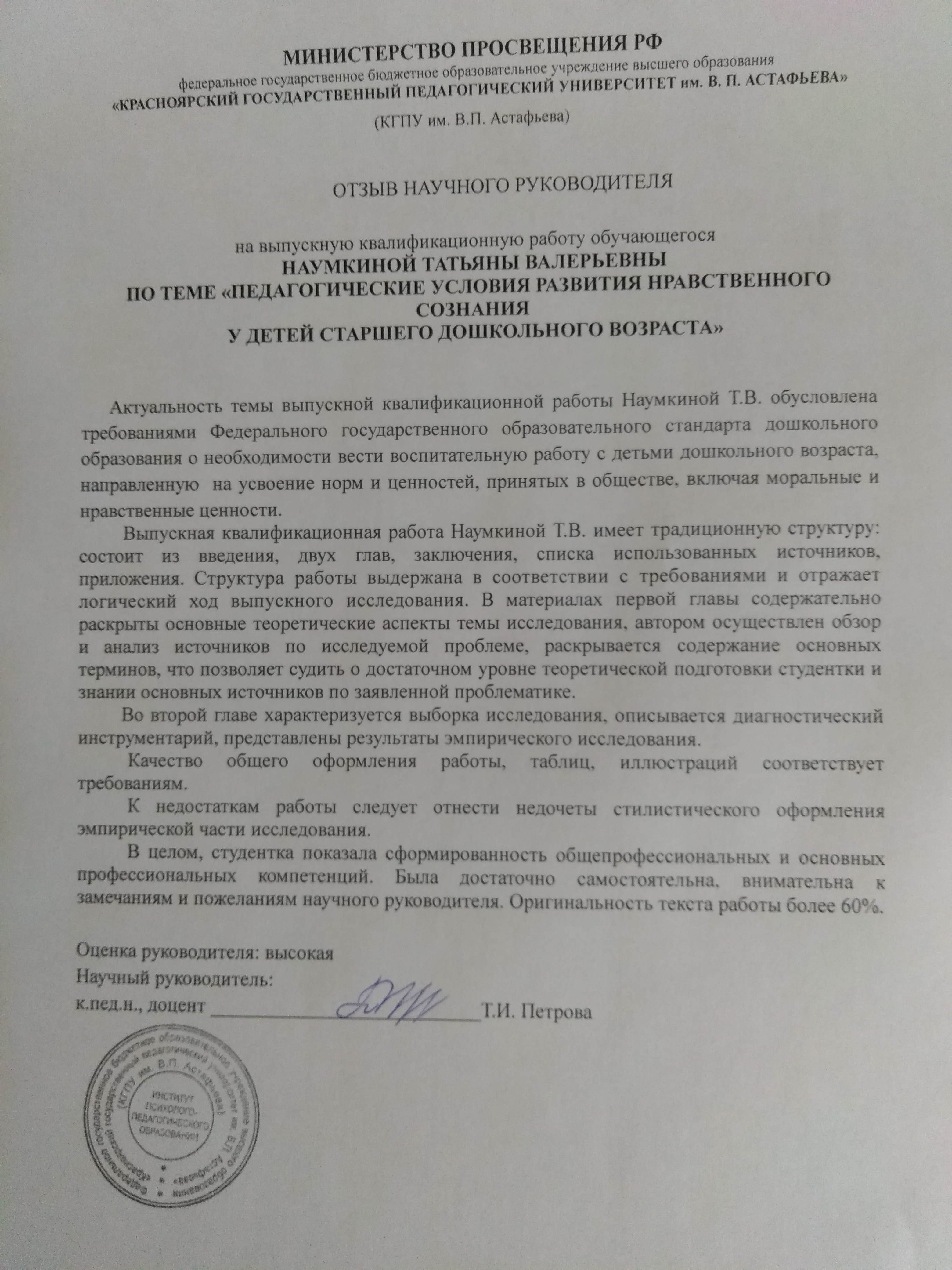 Наумкина Т.В. ПЕДАГОГИЧЕСКИЕ УСЛОВИЯ РАЗВИТИЯ НРАВСТВЕННОГО СОЗНАНИЯ У ДЕТЕЙ СТАРШЕГО ДОШКОЛЬНОГО ВОЗРАСТА