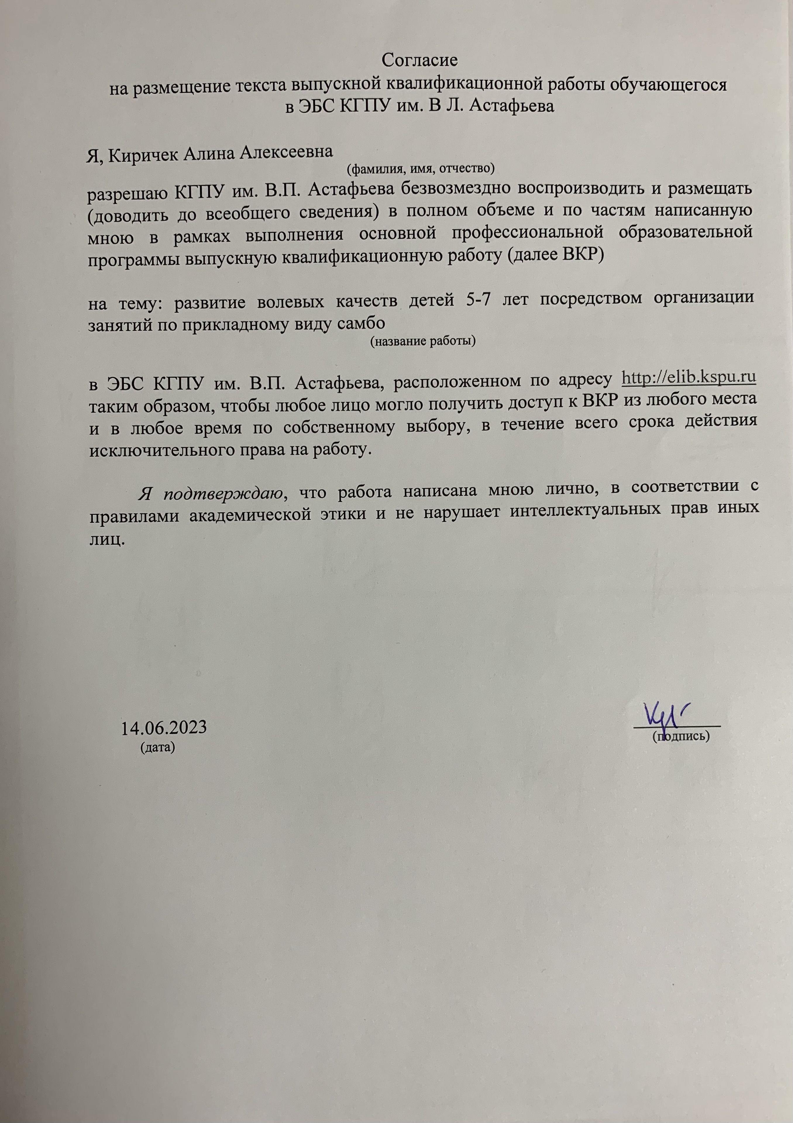 Киричек А.А. РАЗВИТИЕ ВОЛЕВЫХ КАЧЕСТВ ДЕТЕЙ 5-7 ЛЕТ ПОСРЕДСТВОМ ОРГАНИЗАЦИИ ЗАНЯТИЙ ПО ПРИКЛАДНОМУ ВИДУ САМБО
