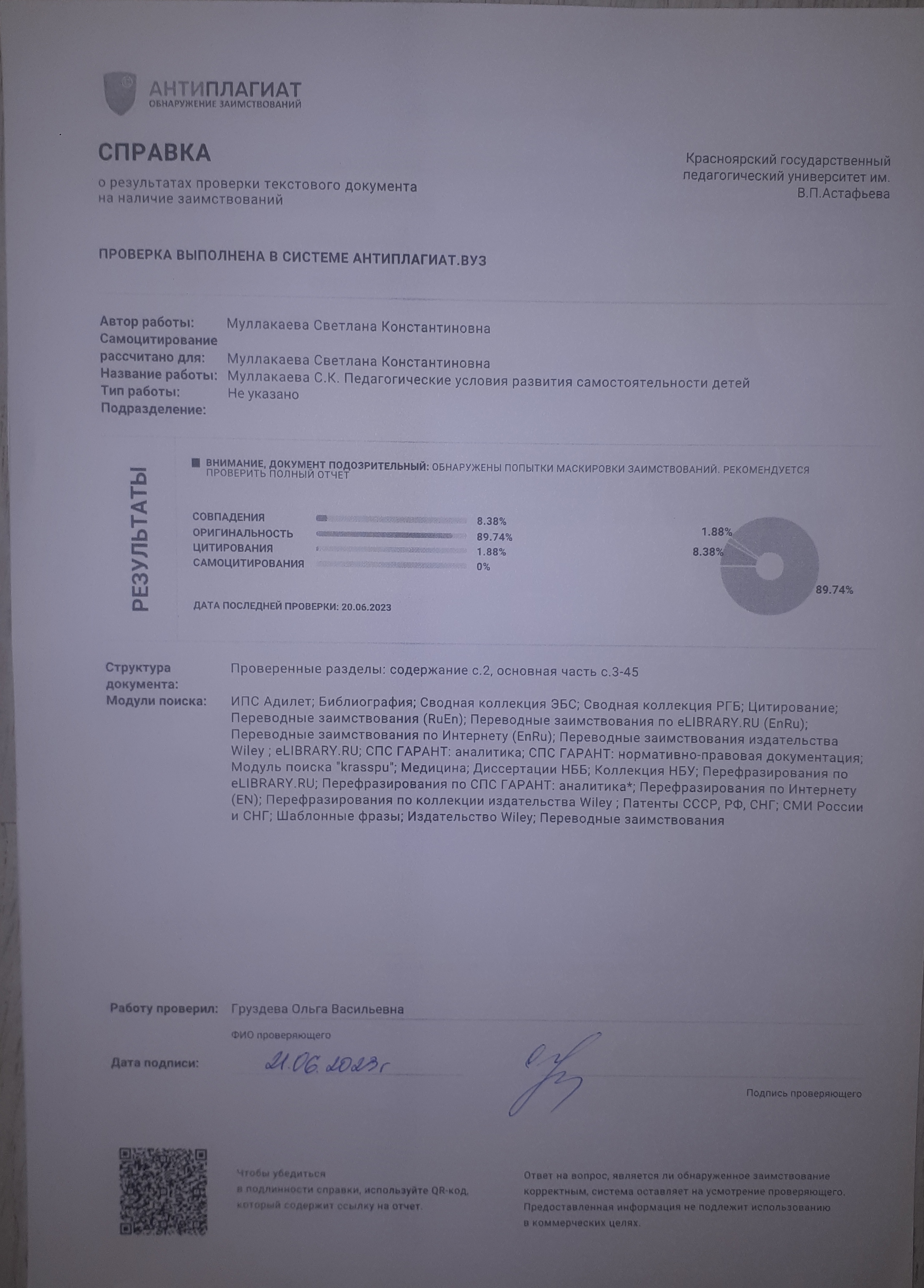 Муллакаева С.К. Педагогические условия развития самостоятельности детей старшего дошкольного возраста в условиях дошкольного образовательного учреждения