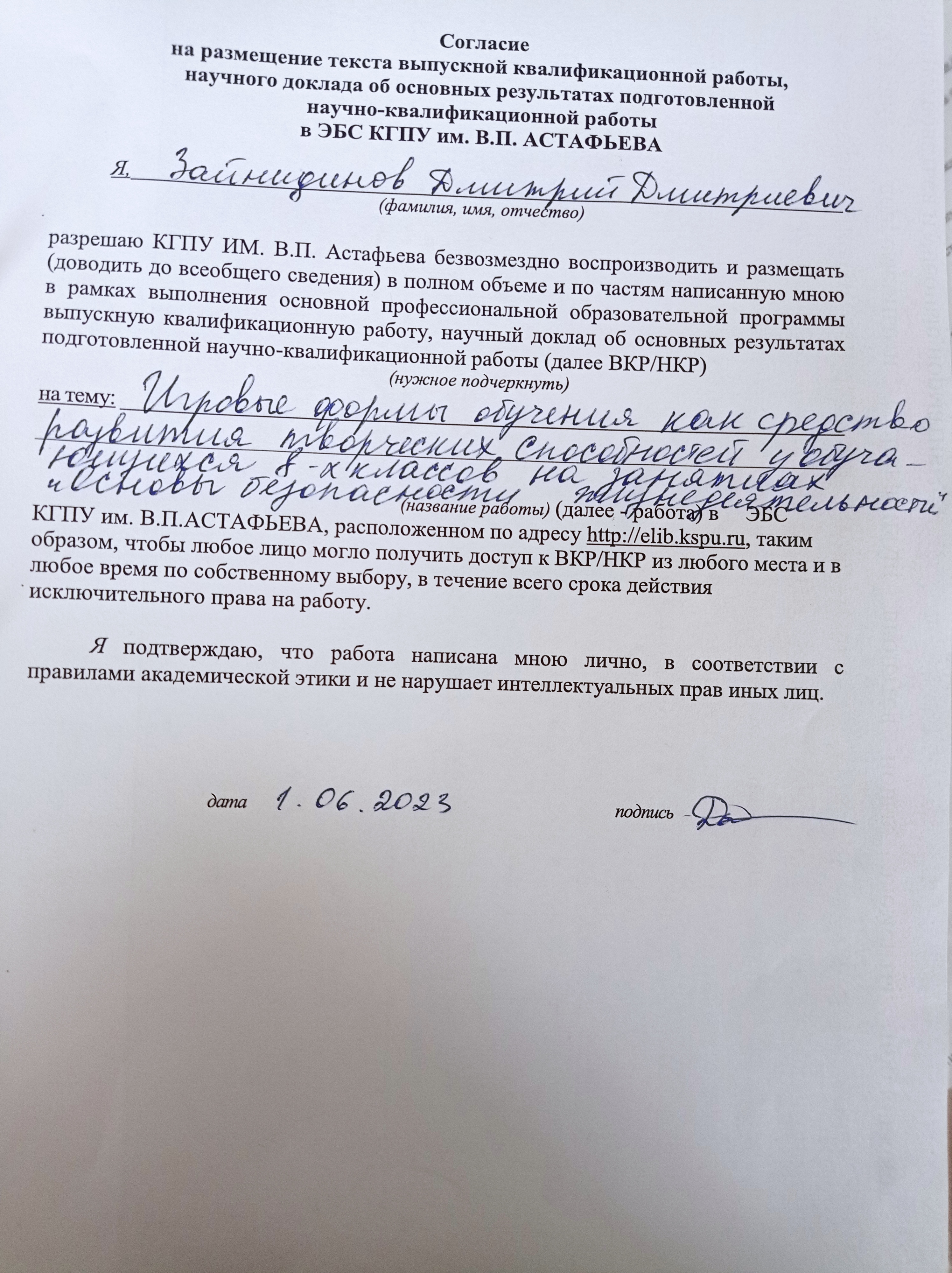 Игровые формы обучения как средство развития творческих способностей у обучающихся 8-х классов на занятиях «Основы безопасности жизнедеятельности»
