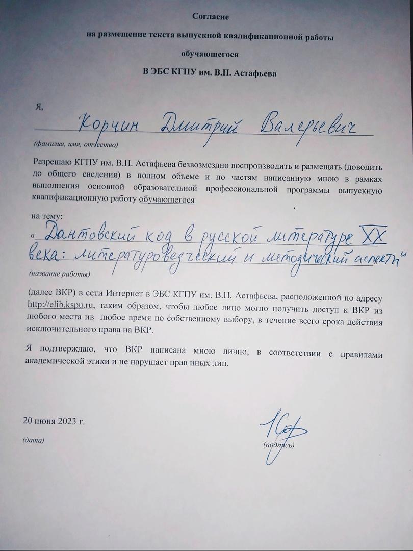 Дантовский код в русской литературе 20-го века: литературоведческий и методический аспекты