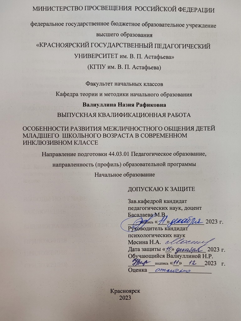 Особенности развития межличностного общения детей младшего школьного возраста в современном инклюзивном классе