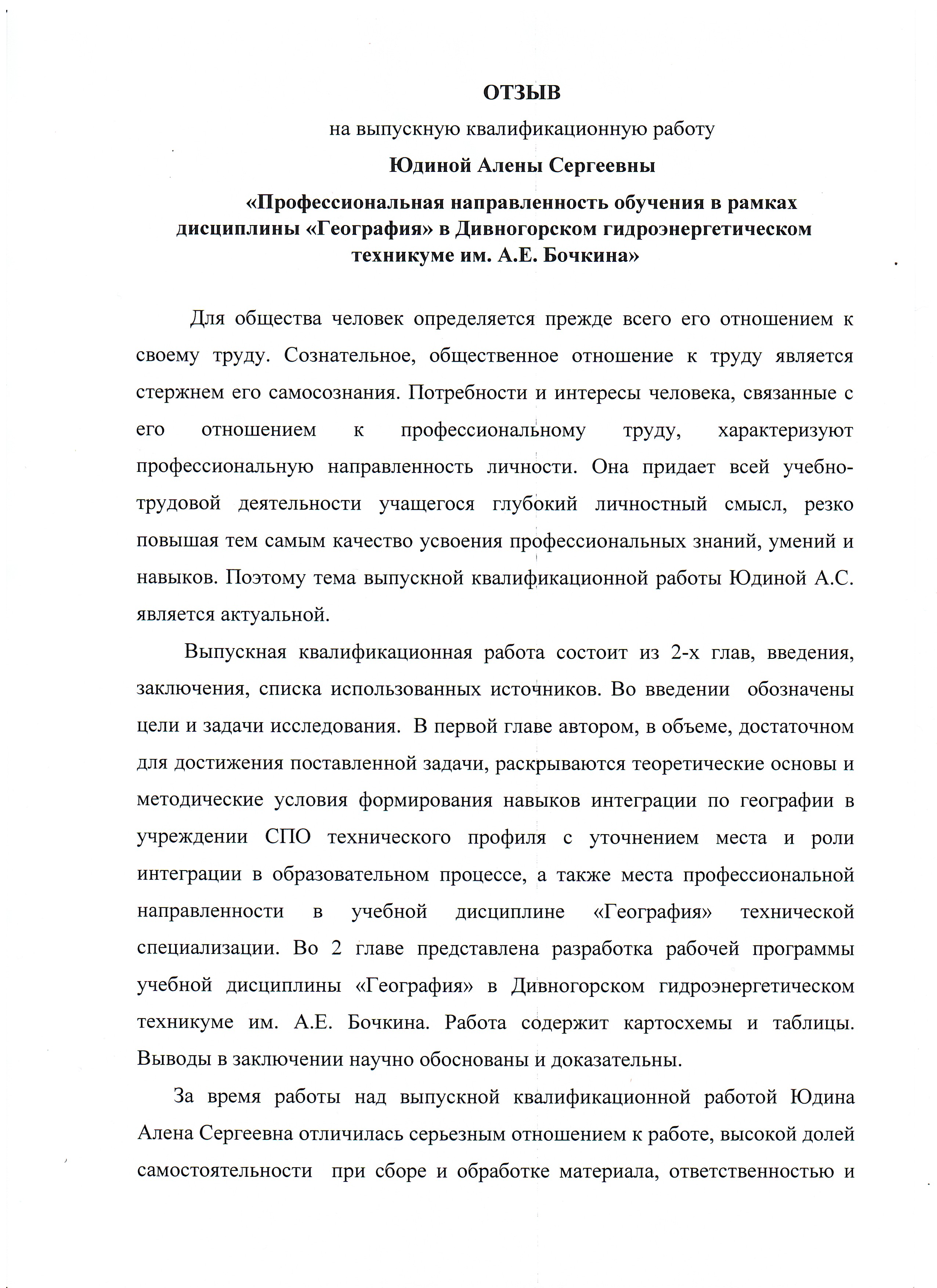 Профессиональная направленность в обучении в рамках дисциплины «География» в Дивногорском гидроэнергетическом техникуме им. А.Е. Бочкина
