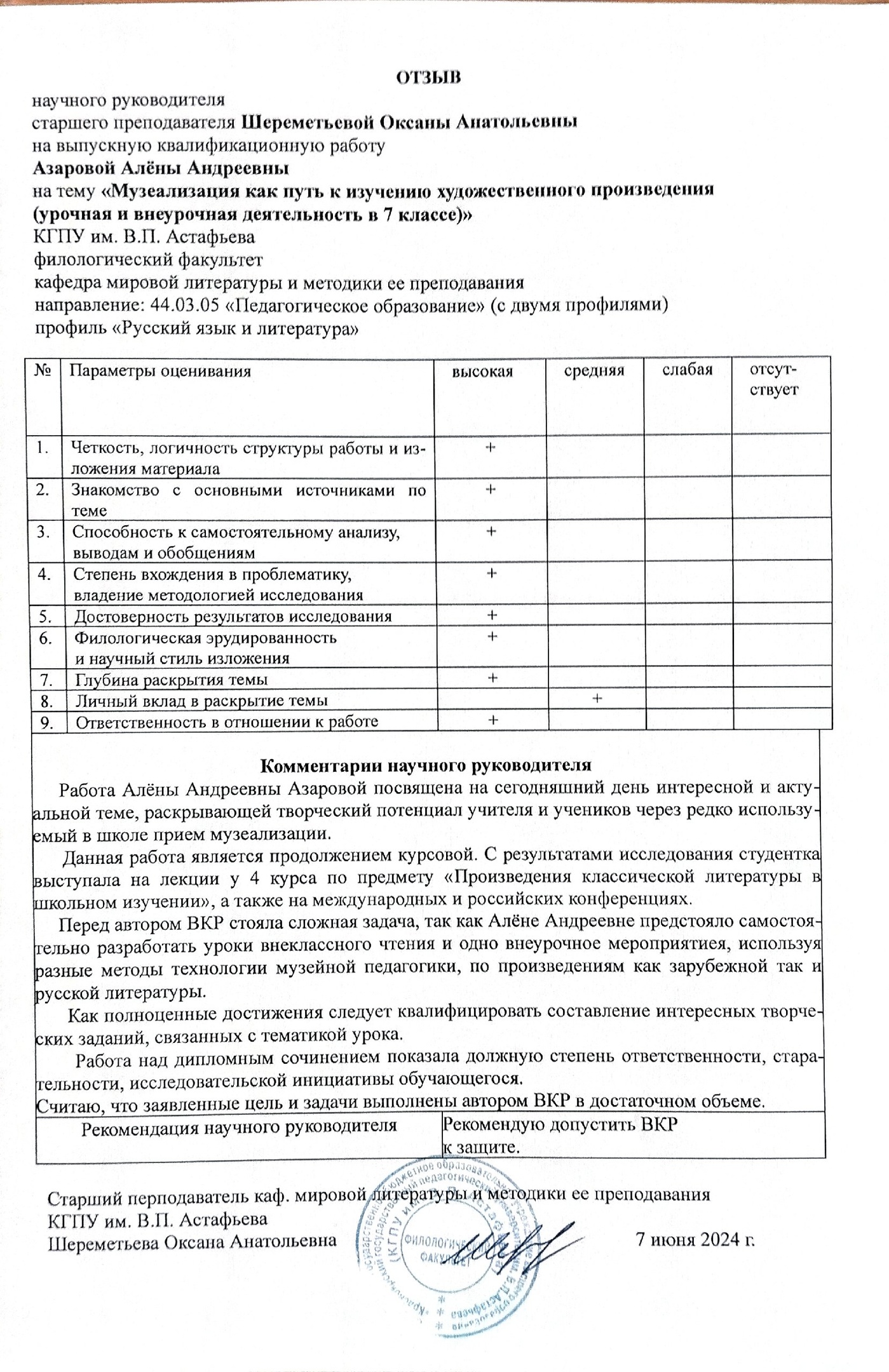 "Музеализация как путь к изучению художественного произведения (урочная и внеурочная деятельность в 7 классе)"