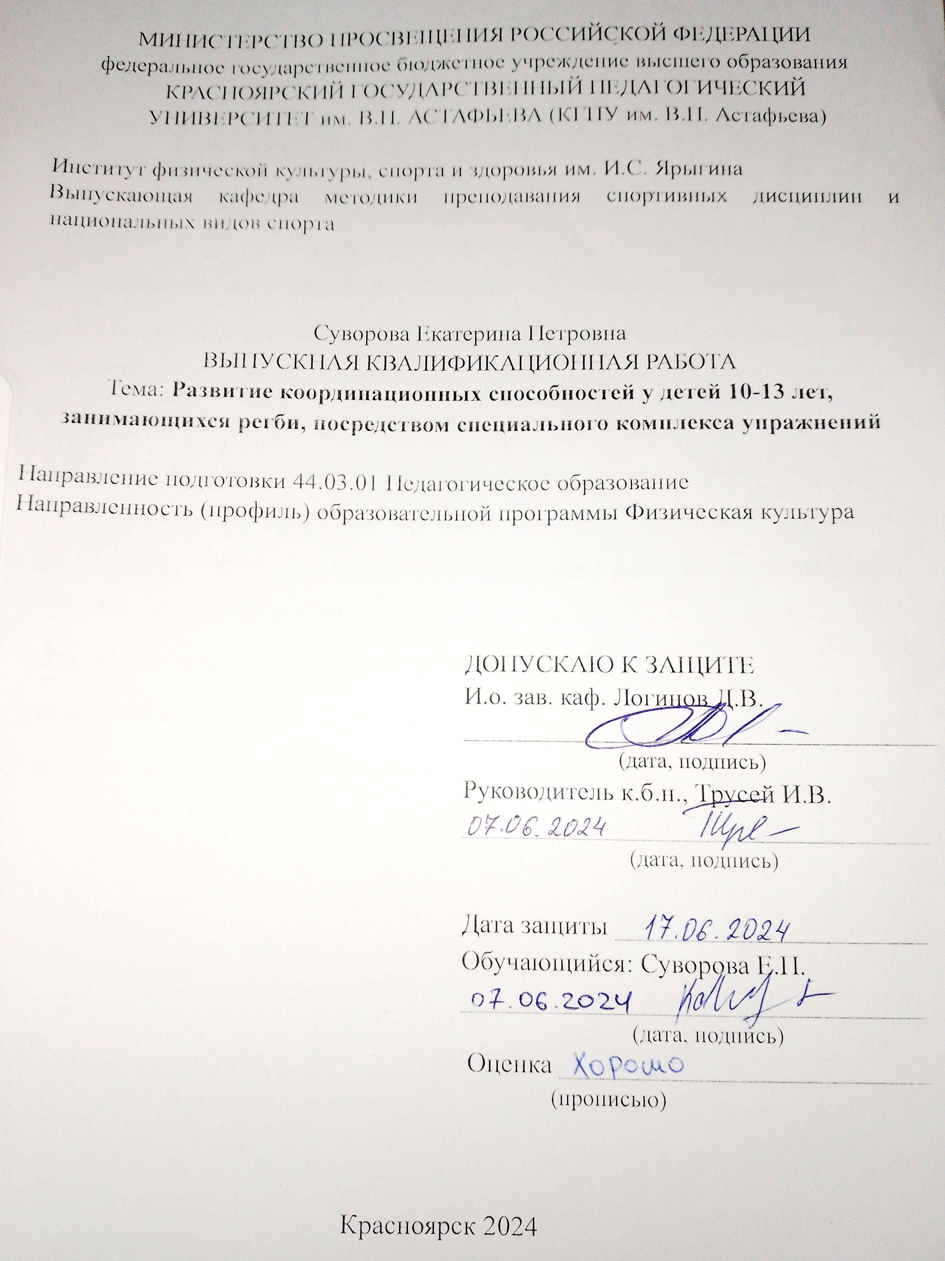 Развитие координационных способностей у детей 10-13 лет, занимающихся регби, посредством специального комплекса упражнений