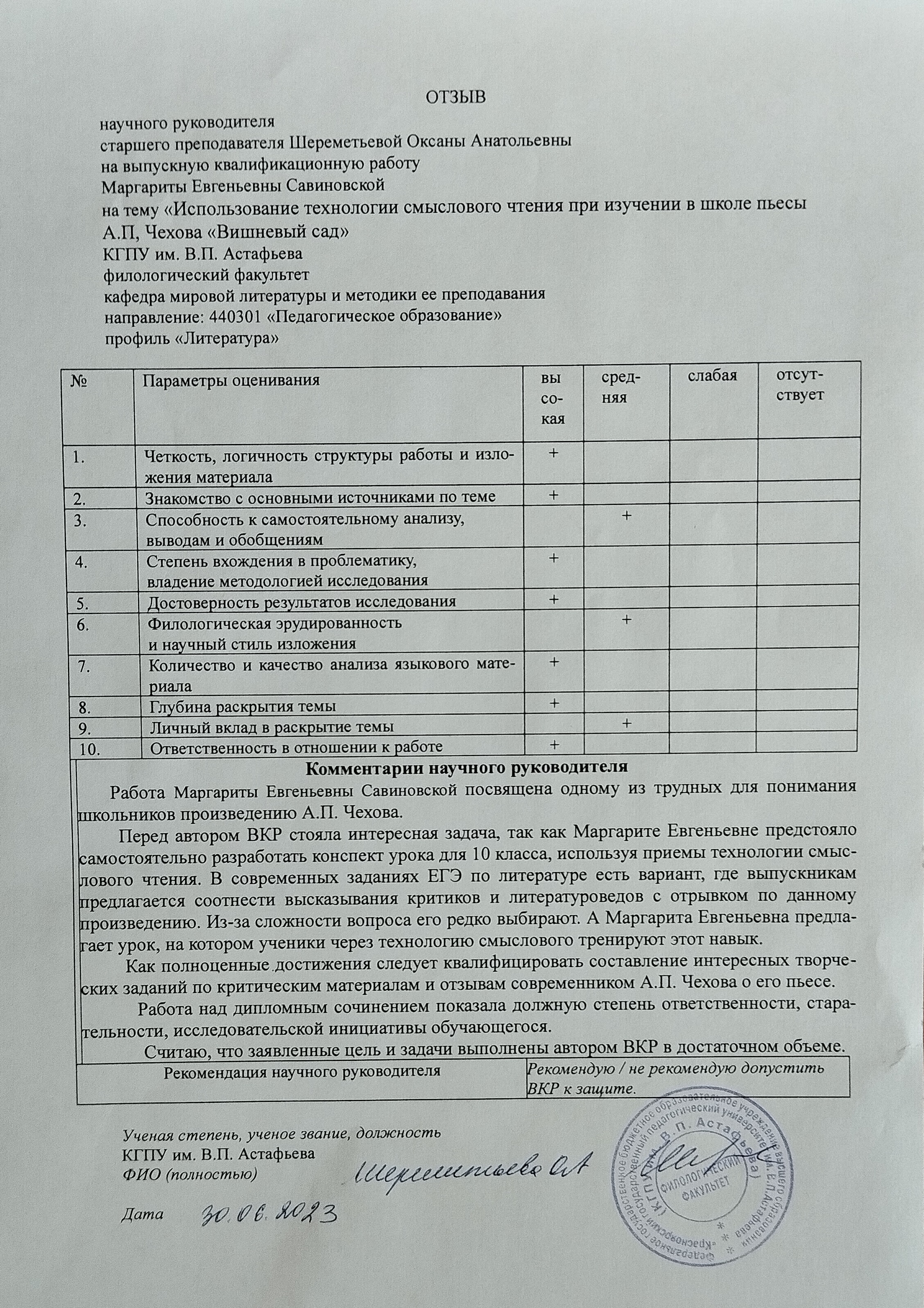 Использование технологии смыслового чтения при изучении в школе пьесы А.П. Чехова «Вишневый сад»