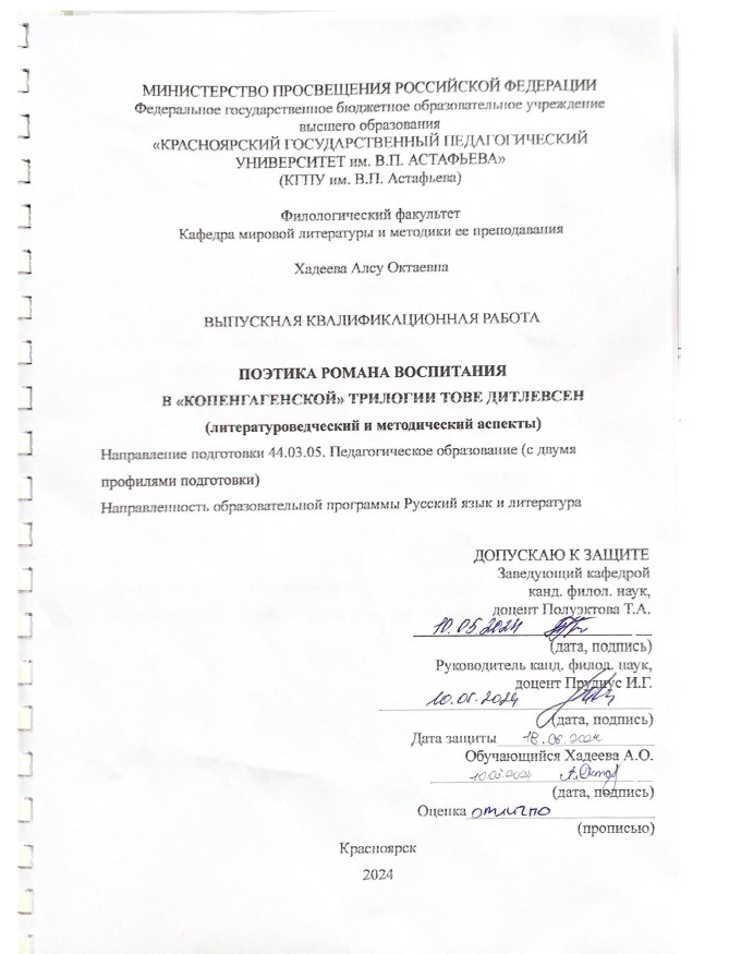 Поэтика романа воспитания «копенгагенской» трилогииТове Дитлевсен (литературоведческий и методический аспекты)