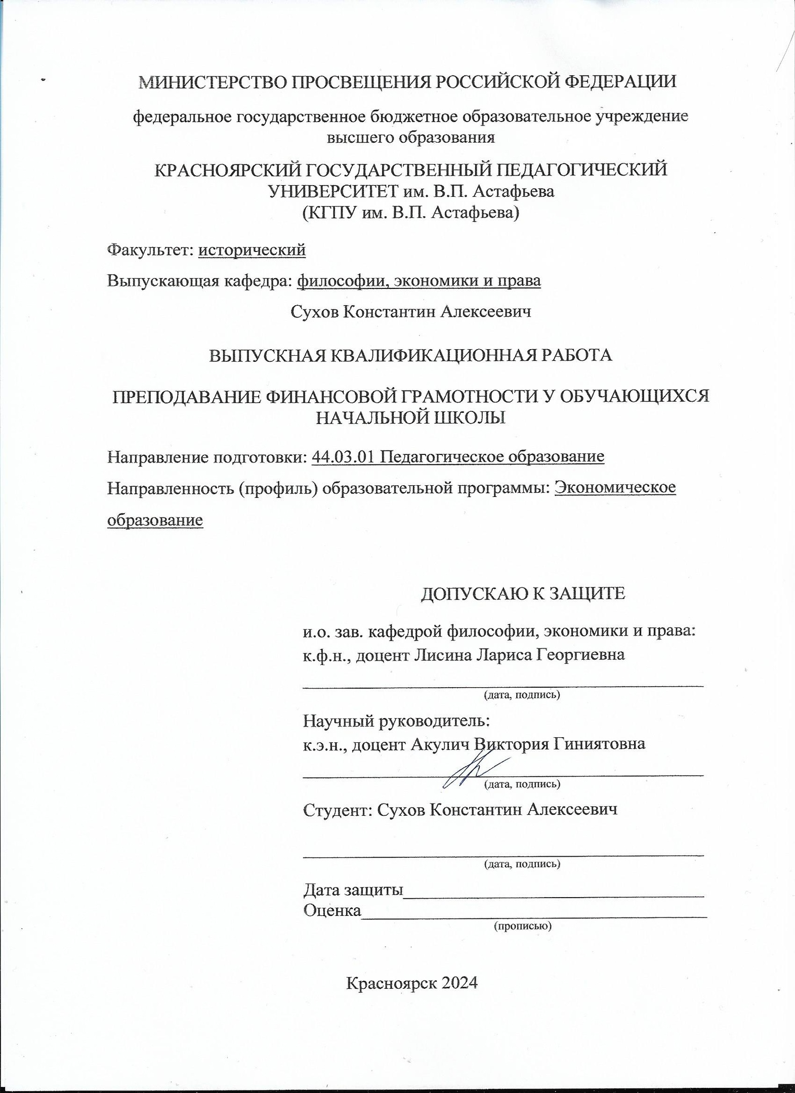 ПРЕПОДАВАНИЕ ФИНАНСОВОЙ ГРАМОТНОСТИ У ОБУЧАЮЩИХСЯ НАЧАЛЬНОЙ ШКОЛЫ