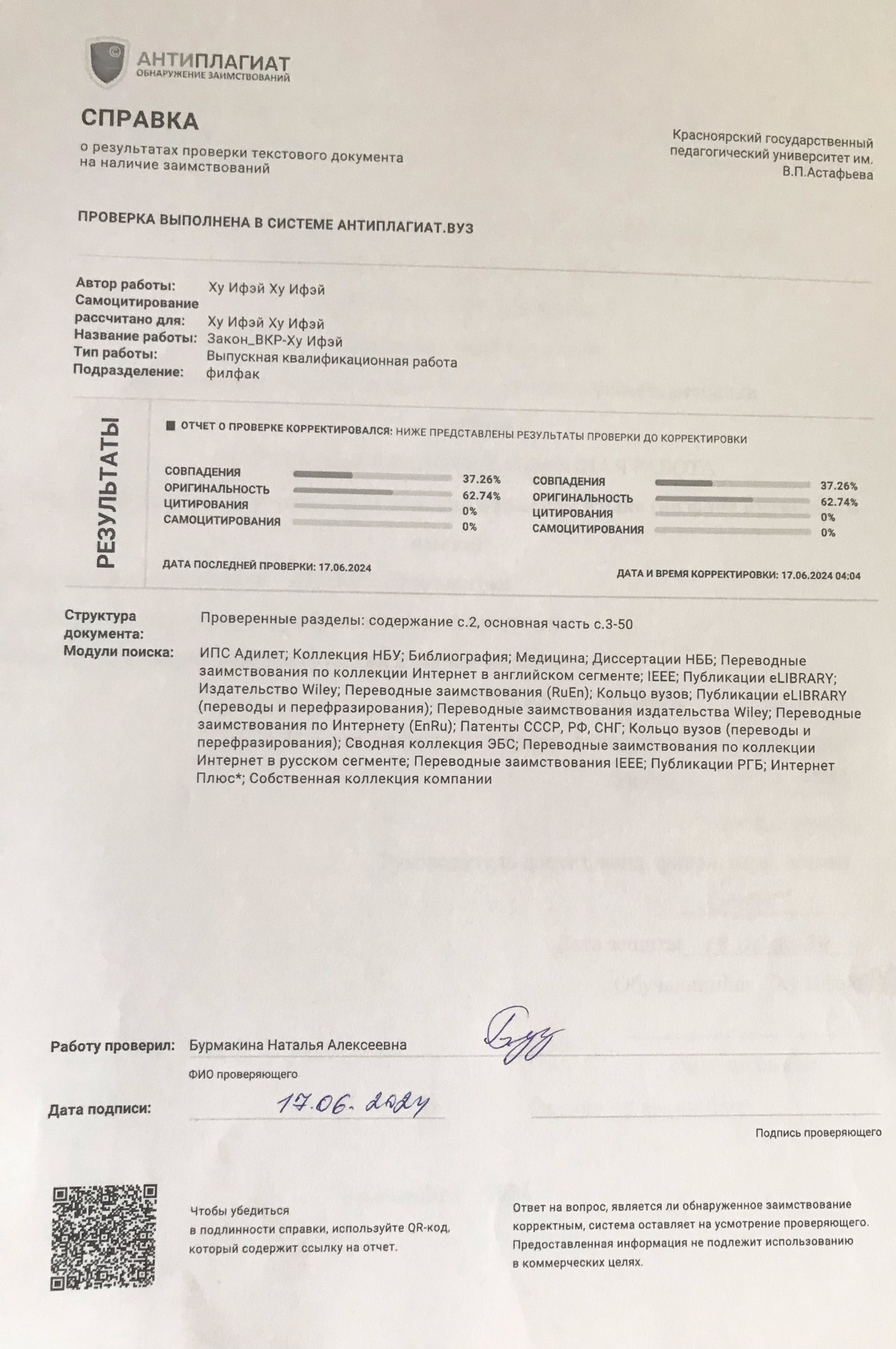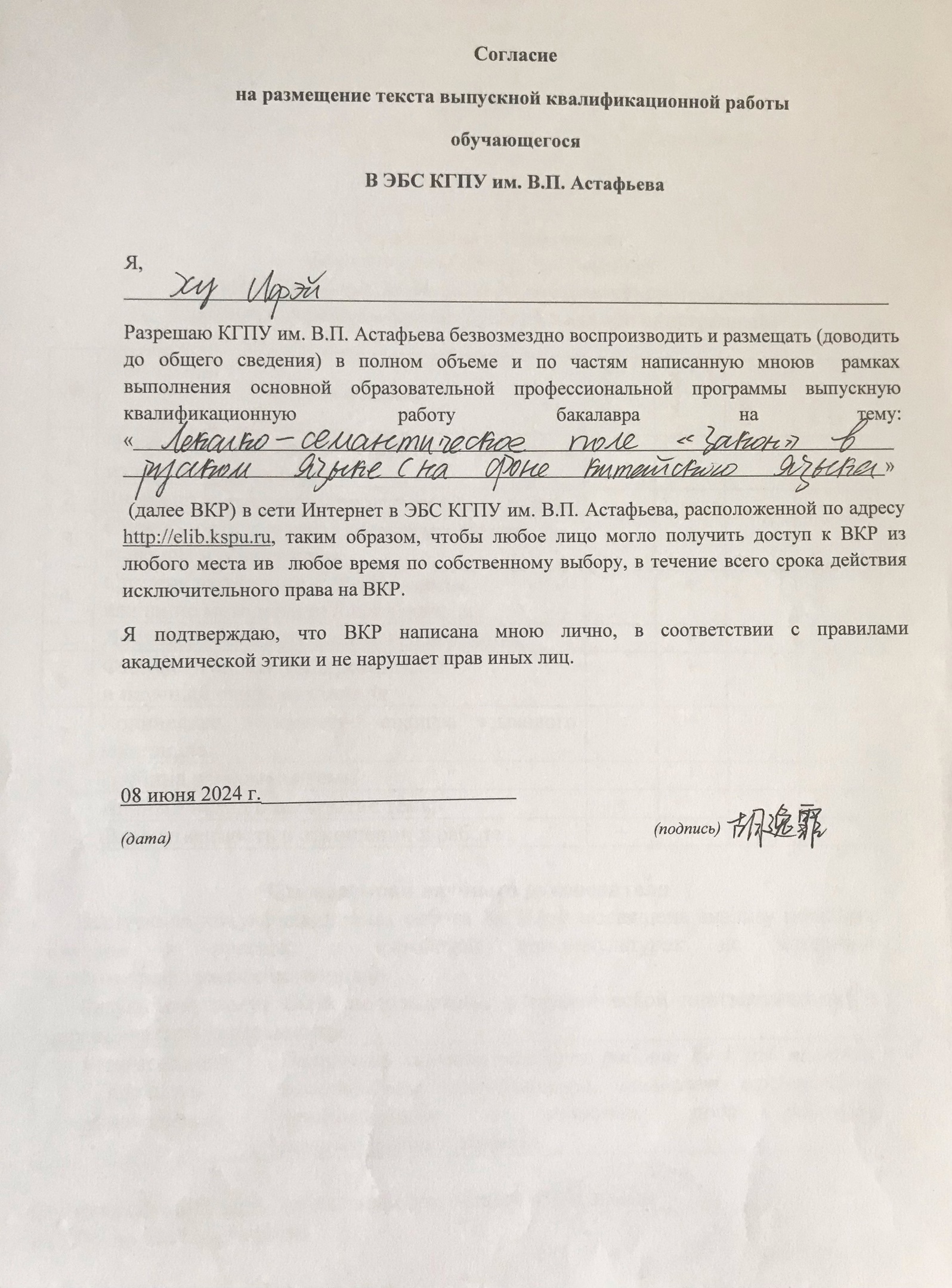 Лексико-семантическое поле «Закон» в русском языке (на фоне китайского языка)