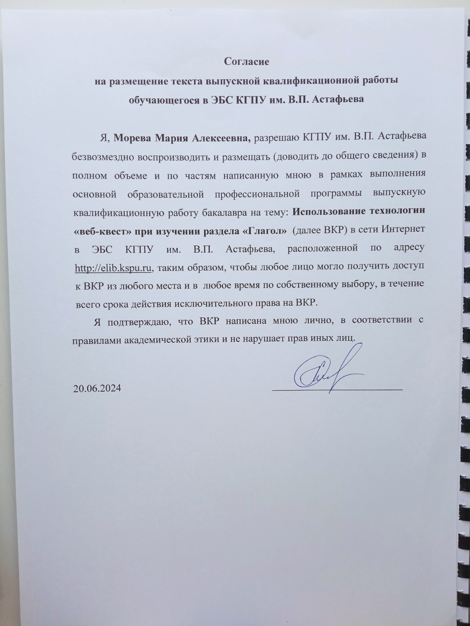 Использование технологии «веб-квест» при изучении раздела «Глагол»