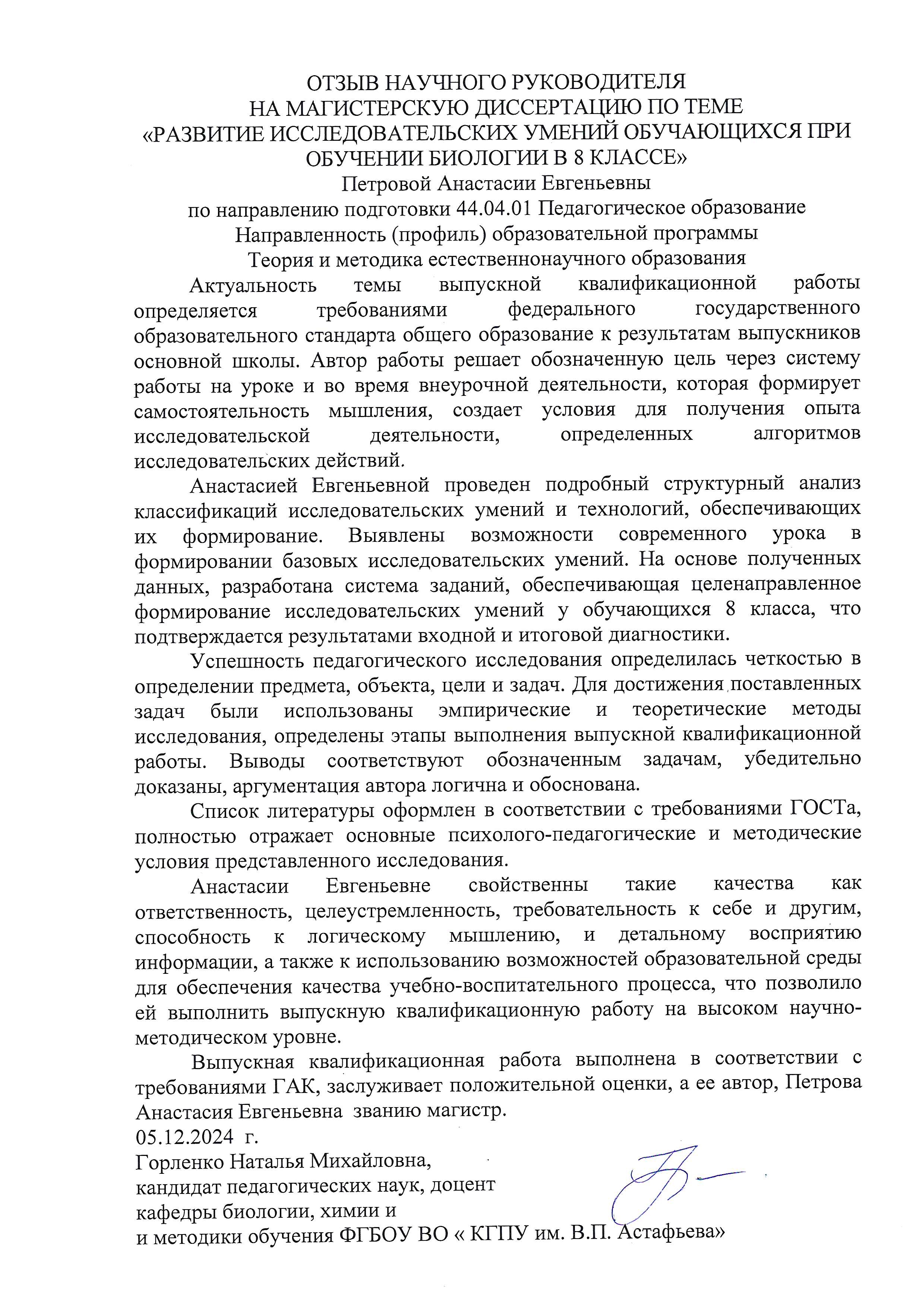 Развитие исследовательских умений обучающихся при обучении биологии в 8 классе
