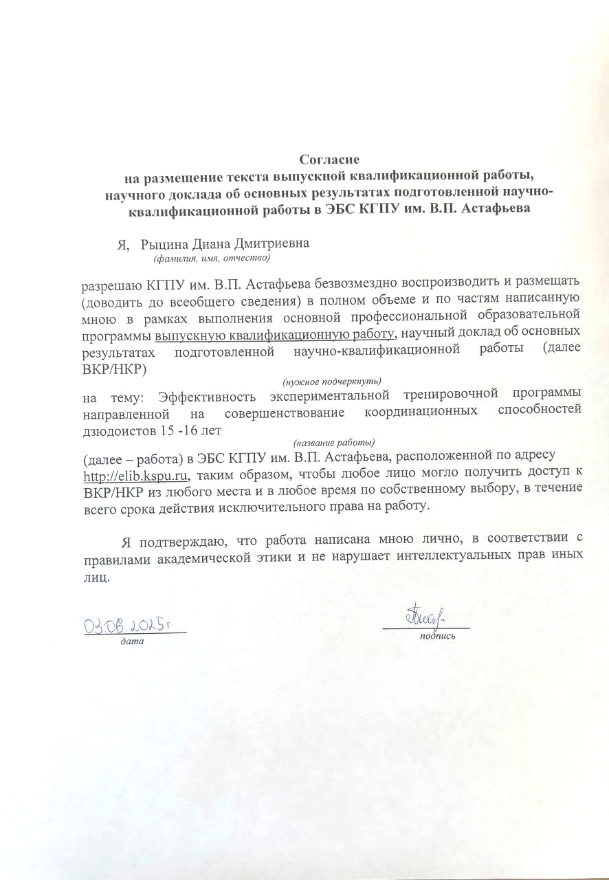 Эффективность экспериментальной тренировочной программы направленной на совершенствование координационных способностей дзюдоистов 15 –16 лет