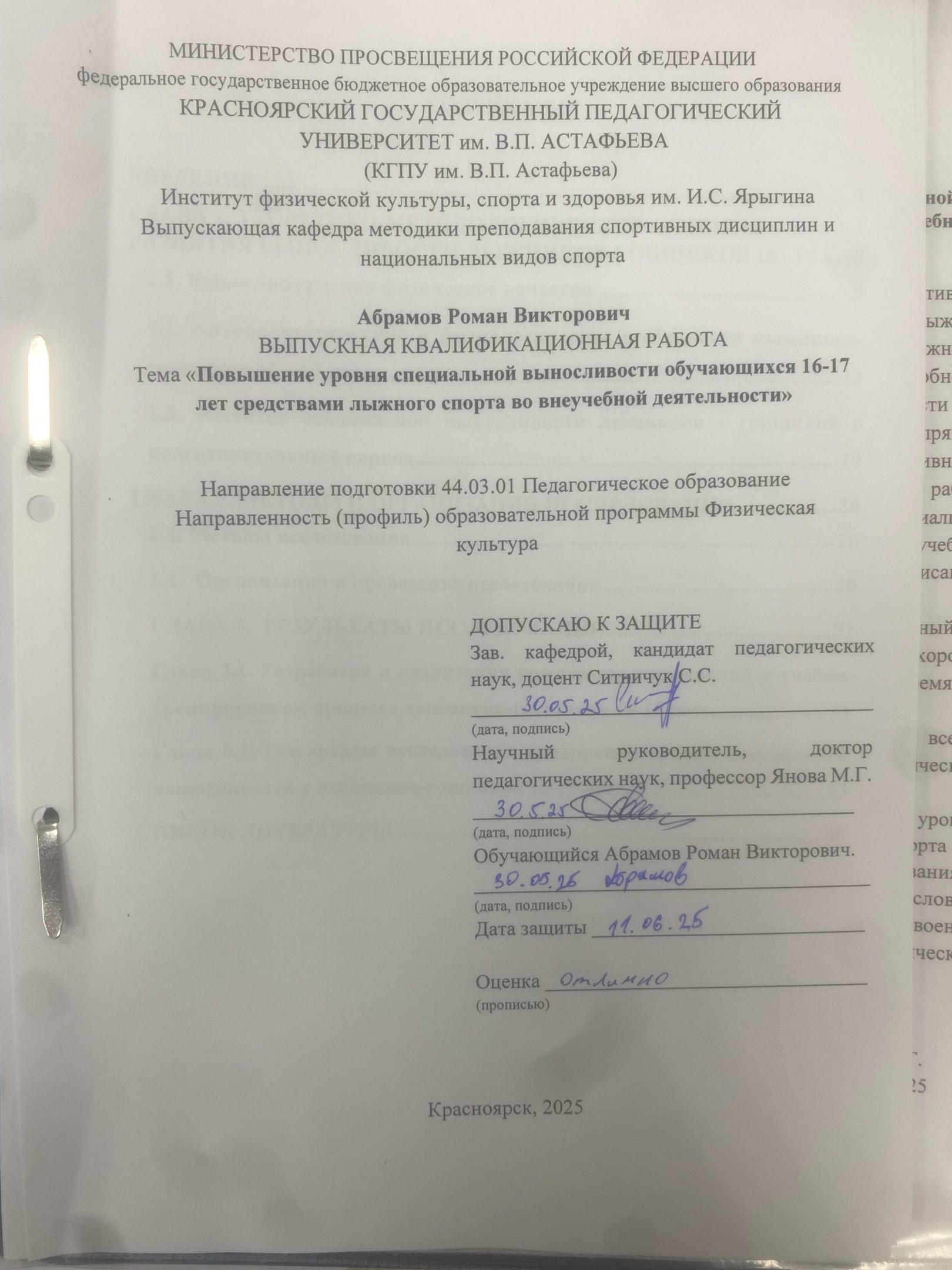 Повышение уровня специальной выносливости обучающихся 16-17 лет средствами лыжного спорта во внеучебной деятельности