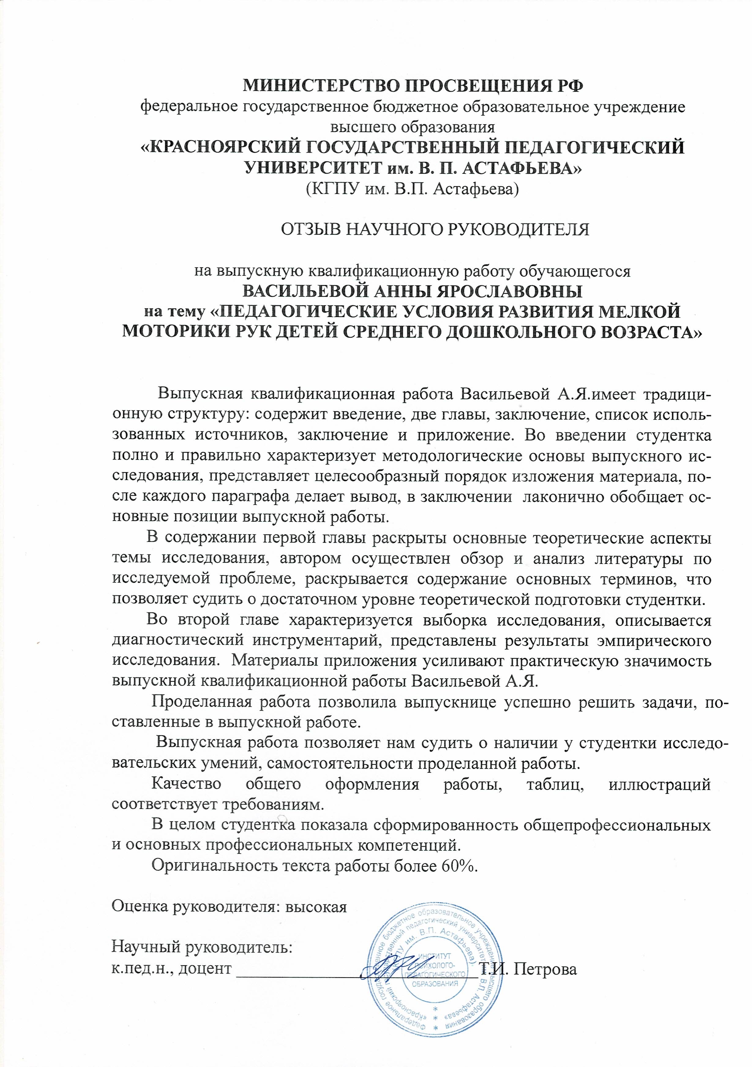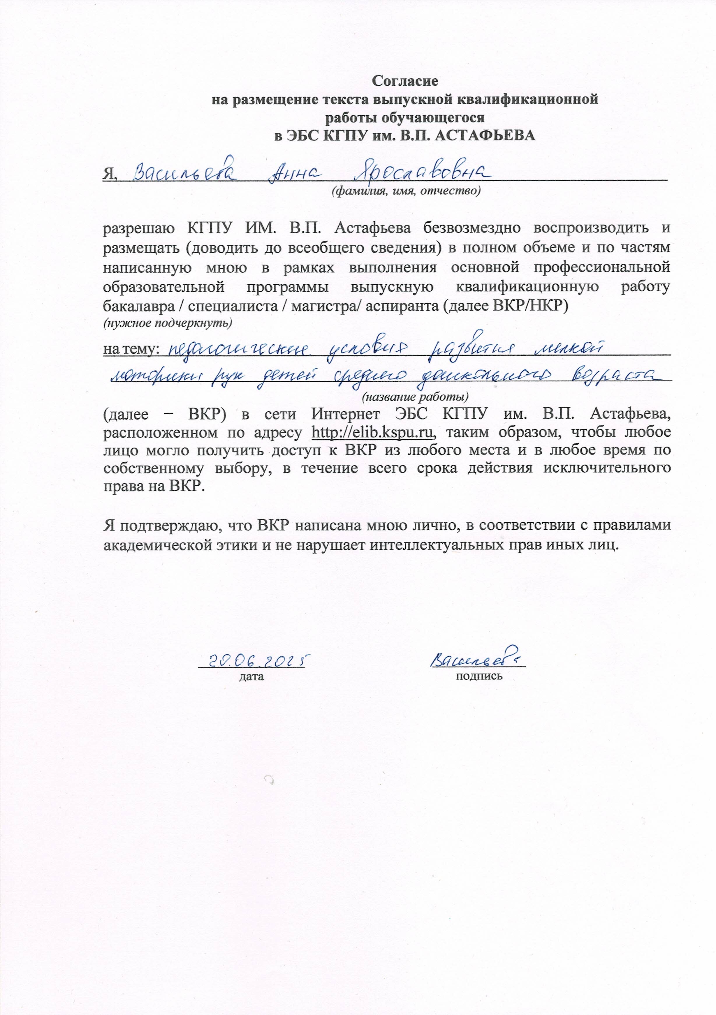 Васильева А. Я. ВКР ПЕДАГОГИЧЕСКИЕ УСЛОВИЯ РАЗВИТИЯ МЕЛКОЙ МОТОРИКИ РУК ДЕТЕЙ СРЕДНЕГО ДОШКОЛЬНОГО ВОЗРАСТА