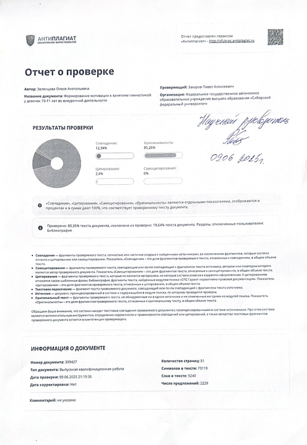 Формирование мотивации к занятиям гимнастикой у девочек 10-11 лет во внеурочной деятельности
