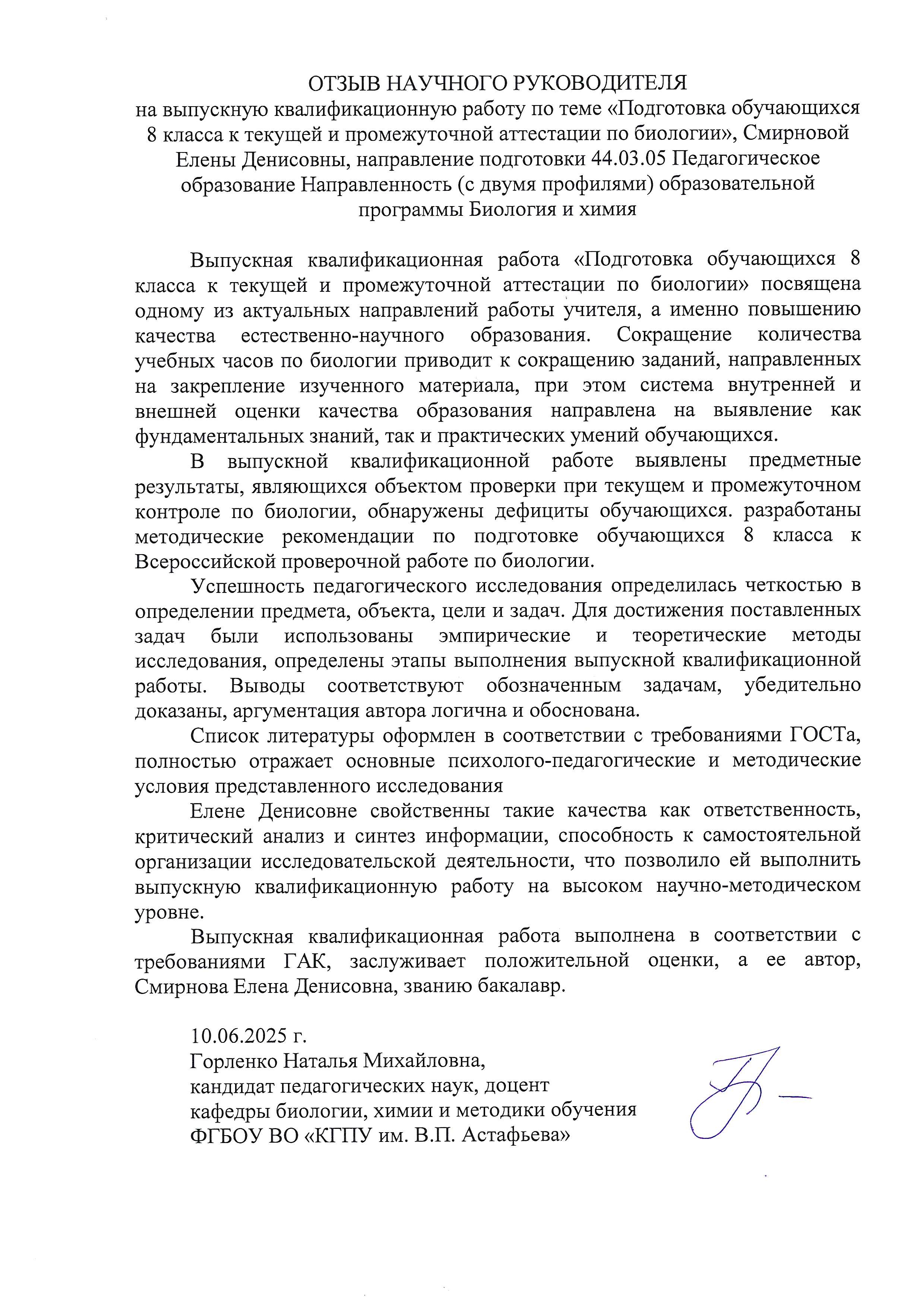 Подготовка обучающихся 8 класса к текущей и промежуточной аттестации по биологии